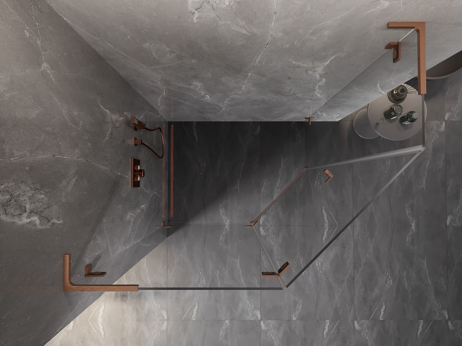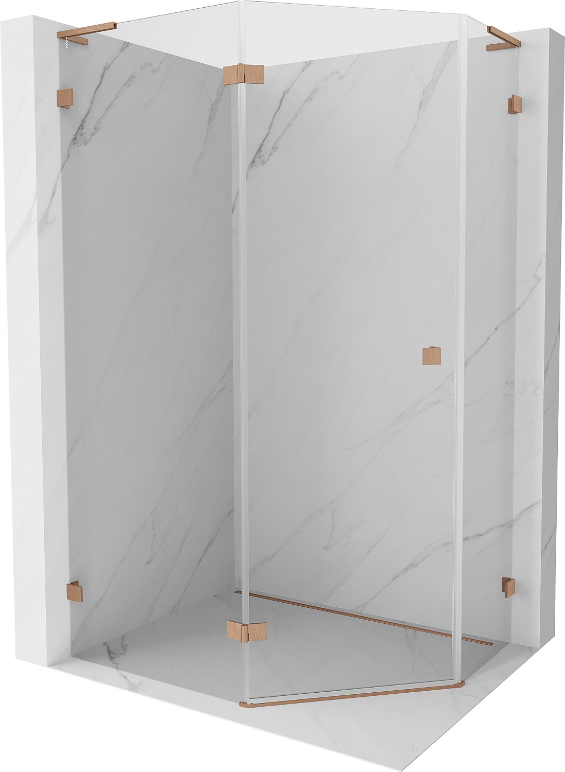 Mexen Lunar L penkiakampė dušo kabina atsiverianti į kairę 90 x 80 cm, skaidri, šepečiu šlifuota varinė