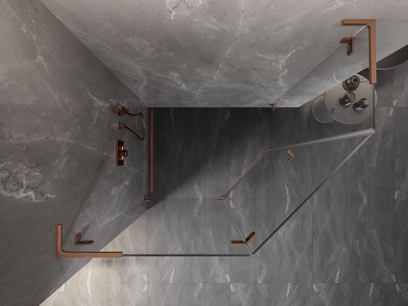Mexen Lunar L penkiakampis dušo kabina, atveriama kairė 90 x 80 cm, permatoma, šlifuotas varis - 831L-090L-080P-65-00-L