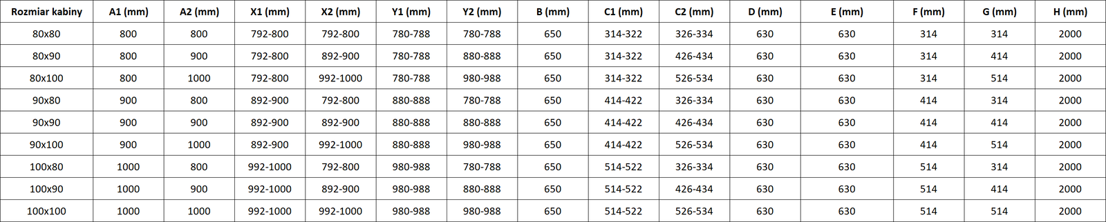 Dydis: 80x90 cm (kairės durys 80 cm, siena 90 cm)