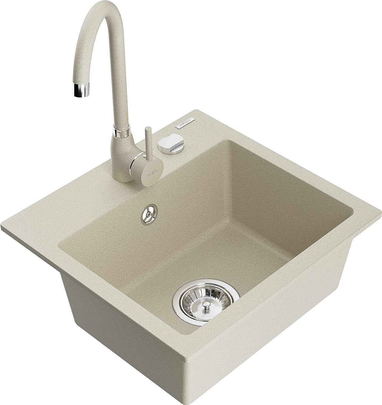 Mexen Milo vienos kameros granito kriauklė su virtuvės maišytuvu Telma, smėlio spalvos - 6505-69-670200-69