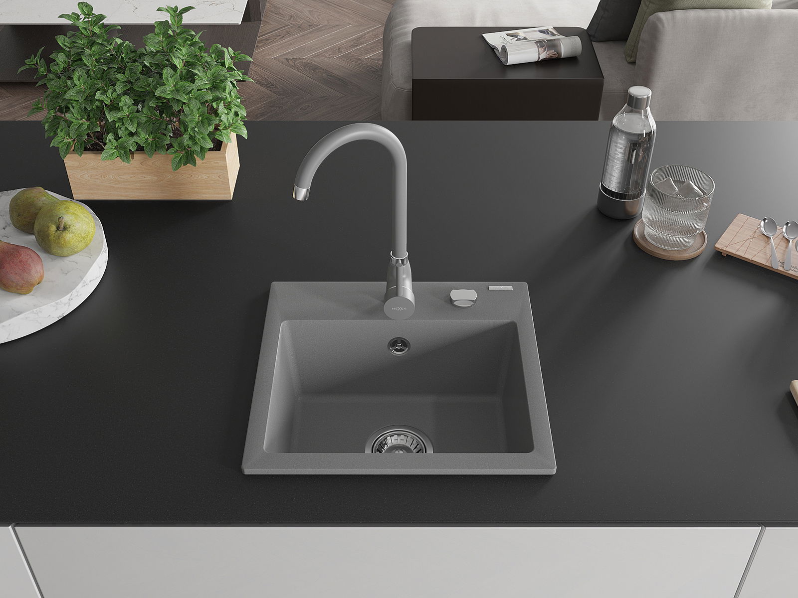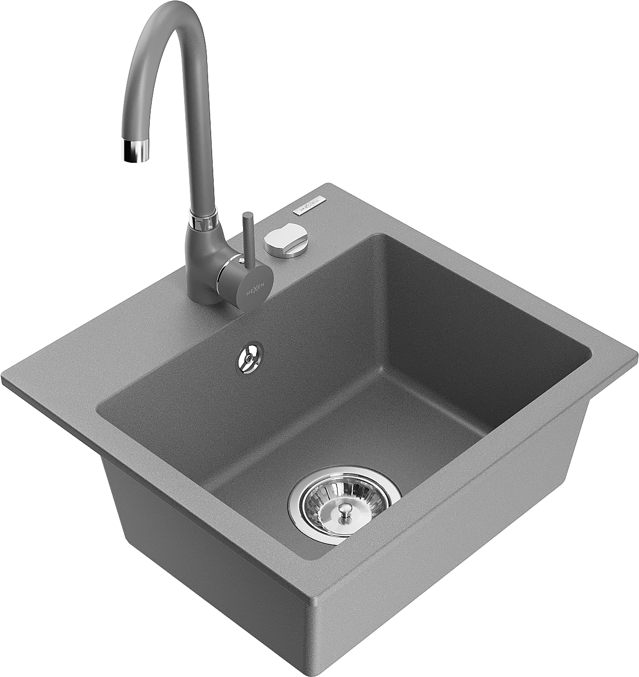 Mexen Milo granito plautuvė vienos kameros su virtuviniu maišytuvu Telma, pilka - 6505-71-670200-71