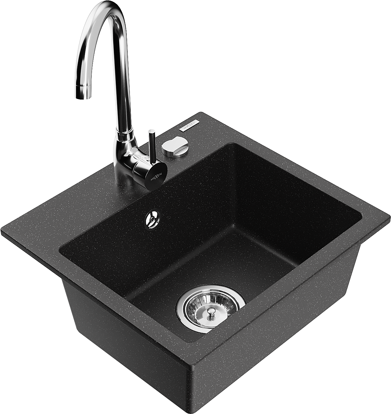 Mexen Milo granitinis virtuvės plautuvas vienos kameros su Telma virtuvės maišytuvu, juodas/sidabrinis - 6505-73-670200-00