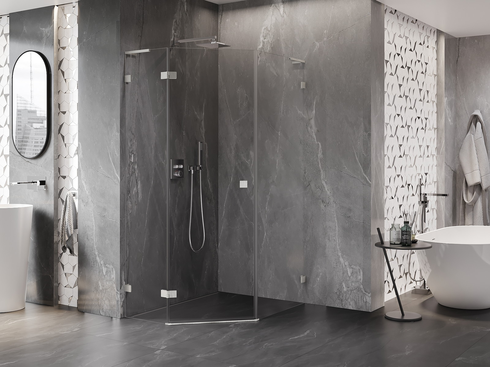 Mexen Lunar L yra elegantiška penkiakampė dušo kabina, jungianti estetiką ir funkcionalumą. Su 90x100 cm dydžiu ir kairinėmis atveriamomis durimis, užtikrina patogų naudojimą bet kurioje vonioje. Permatomas 8 mm storio grūdintas stiklas su lengvo valymo danga ir šlifuoto nikelio apdaila suteikia modernią išvaizdą. Dvi montavimo sistemos ir durų pakėlimo mechanizmas užtikrina stabilumą ir patogumą, o magnetinės juostos veikia kaip sandarikliai.