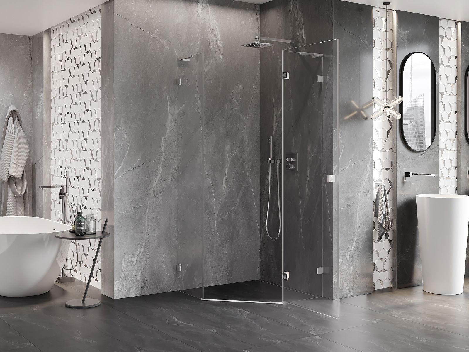 Spaustukai ir vyriai pagaminti iš labai patvaraus žalvario, papildomai sukuriantys lygią stiklo plokštumą. Tai puikus pasirinkimas, jungiantis eleganciją, patvarumą ir šiuolaikinį dizainą. Tokie sprendimai prideda dušo estetikai ir tuo pačiu palengvina švaros palaikymą.