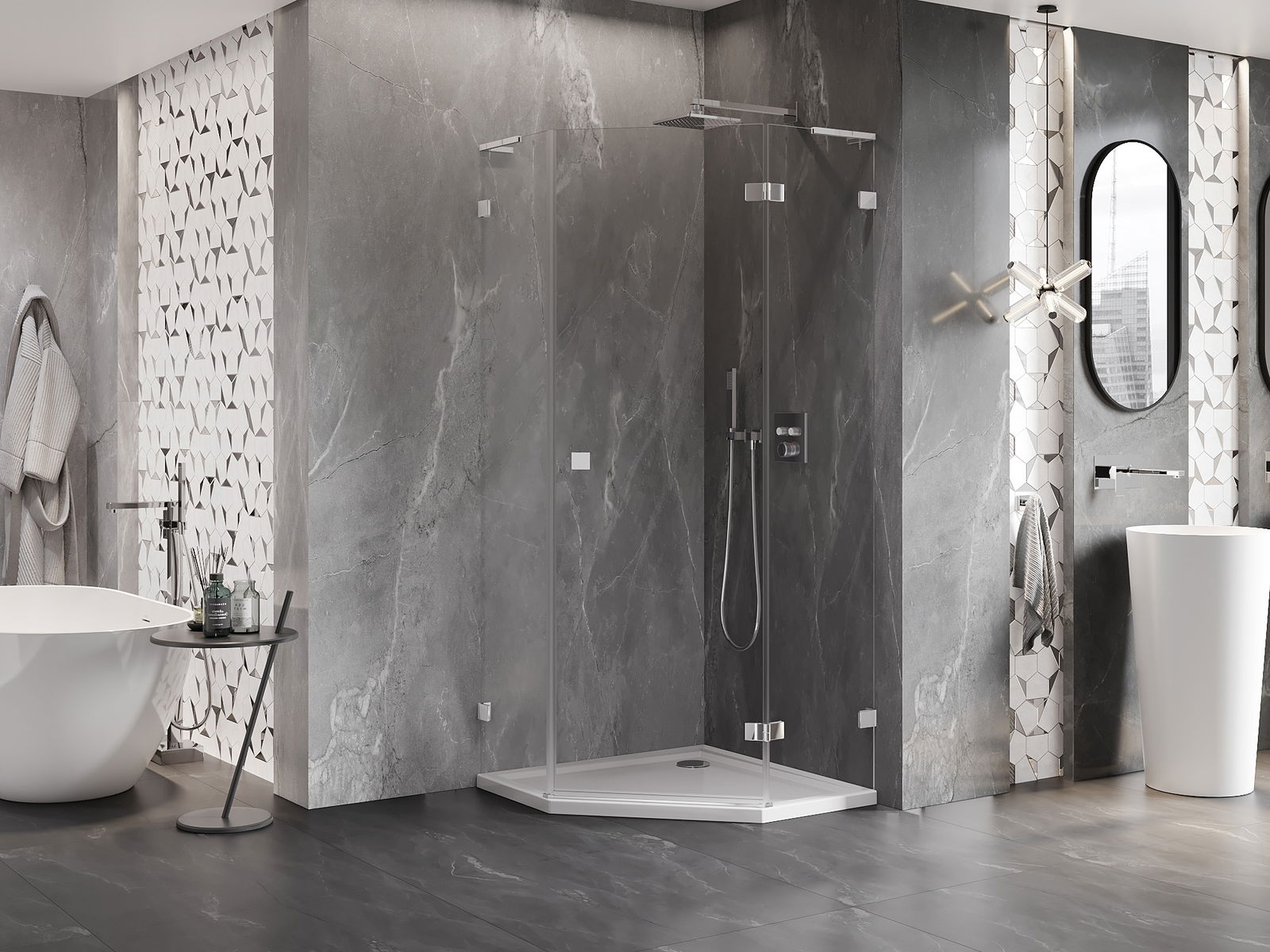 Produktą, atsižvelgiant į poreikius, galima sumontuoti tiek ant dušo padėklo, tiek tiesiogiai ant grindų. Universalus montavimo būdas leidžia pritaikyti produktą įvairių tipų vonios kambariams ir erdvės konfigūracijoms.
