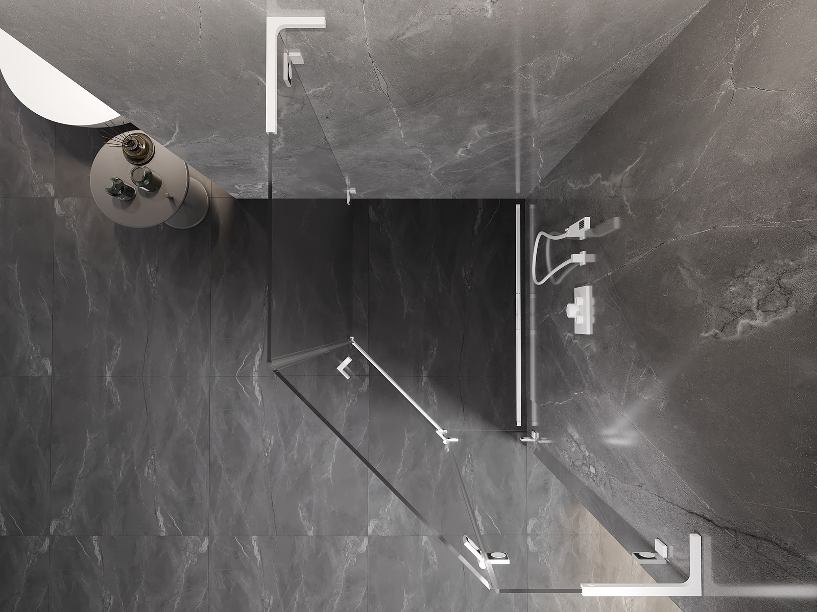 Mexen Lunar L penkiakampė dešinioji dušo kabina 80 x 90 cm, permatoma, balta - 831L-080P-090L-20-00-P