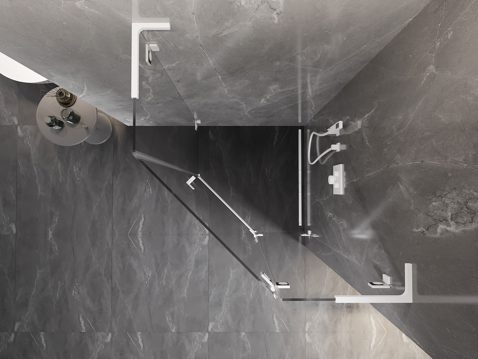 Mexen Lunar L penkiakampė dušo kabina, dešinė, varstoma, 90 x 90 cm, skaidri, balta - 831L-090P-090L-20-00-P