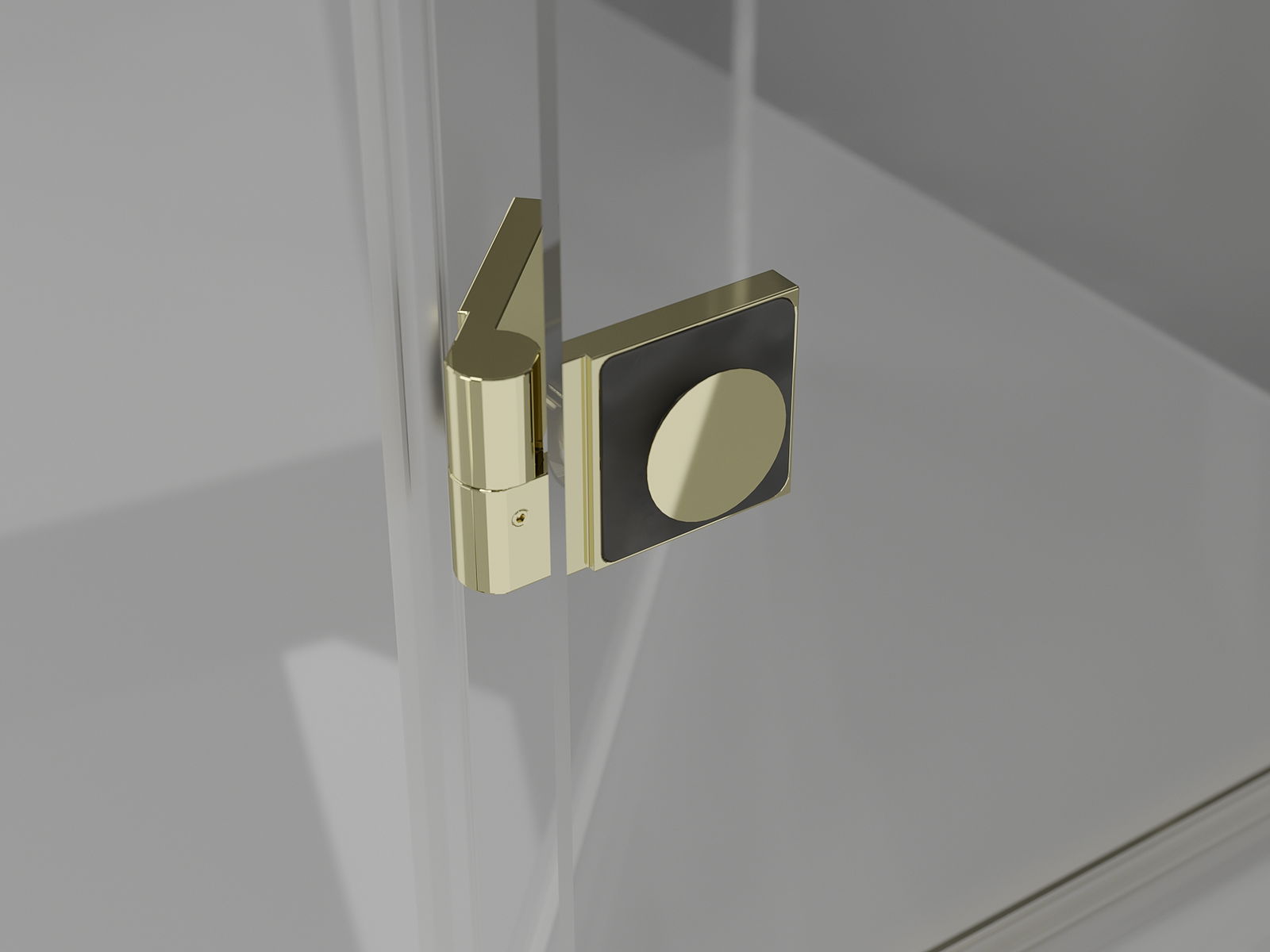 Spaustukai ir vyriai pagaminti iš labai patvaraus žalvario, papildomai sukuriantys lygią stiklo plokštumą. Tai puikus pasirinkimas, jungiantis eleganciją, patvarumą ir šiuolaikinį dizainą. Tokie sprendimai prideda dušo estetikai ir tuo pačiu palengvina švaros palaikymą.