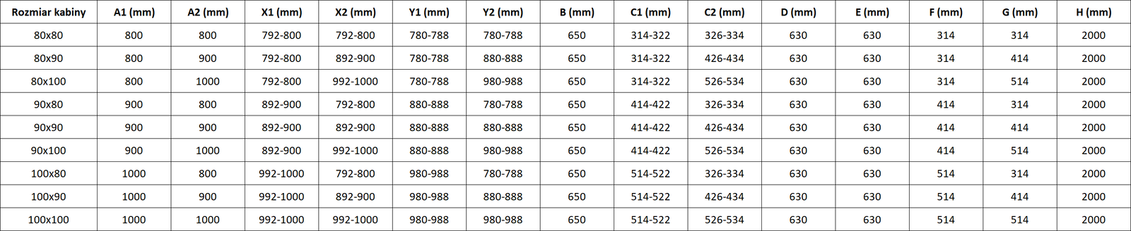Dydis: 100x80 cm (dešinės durys 100 cm, sienelė 80 cm)