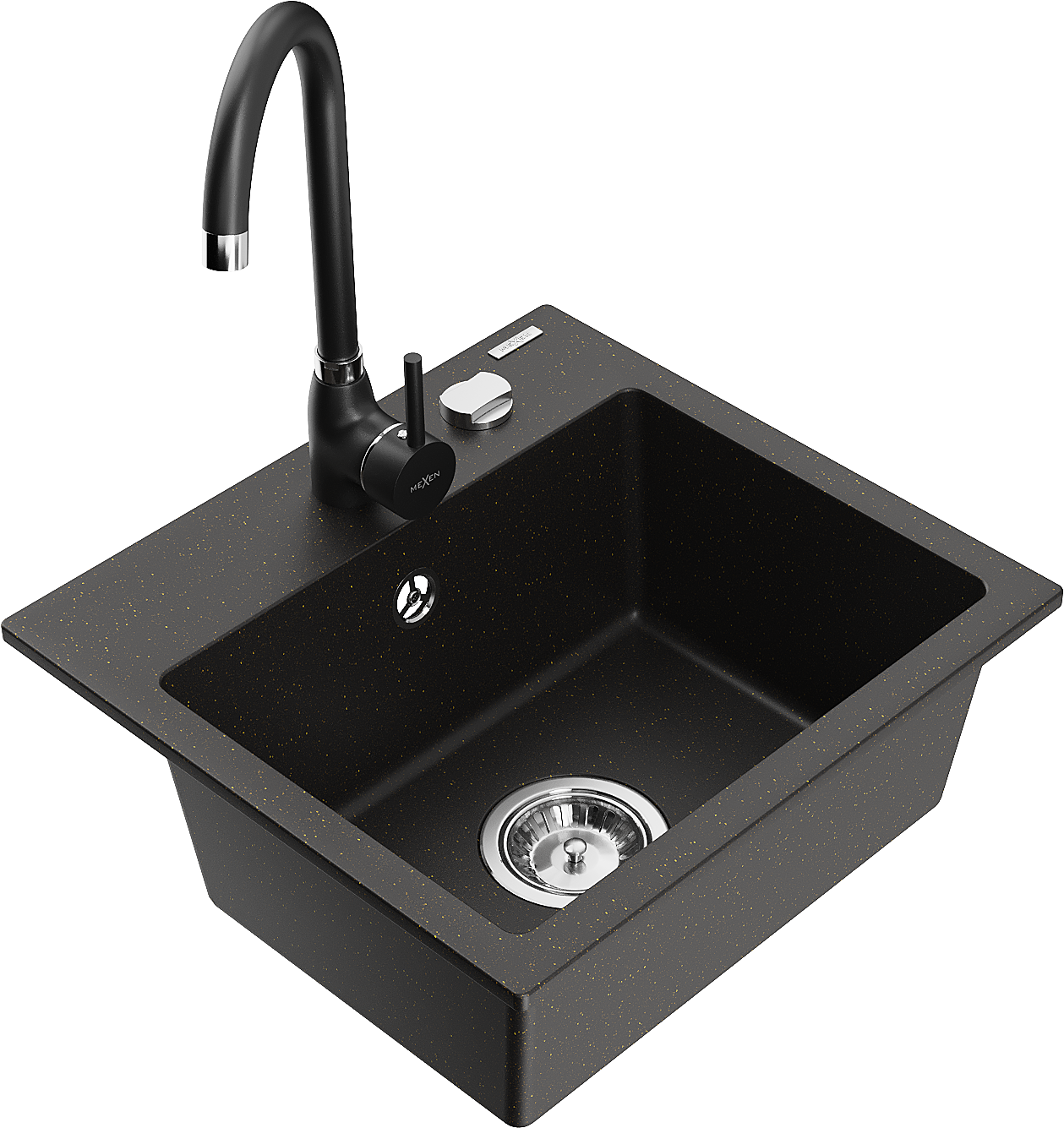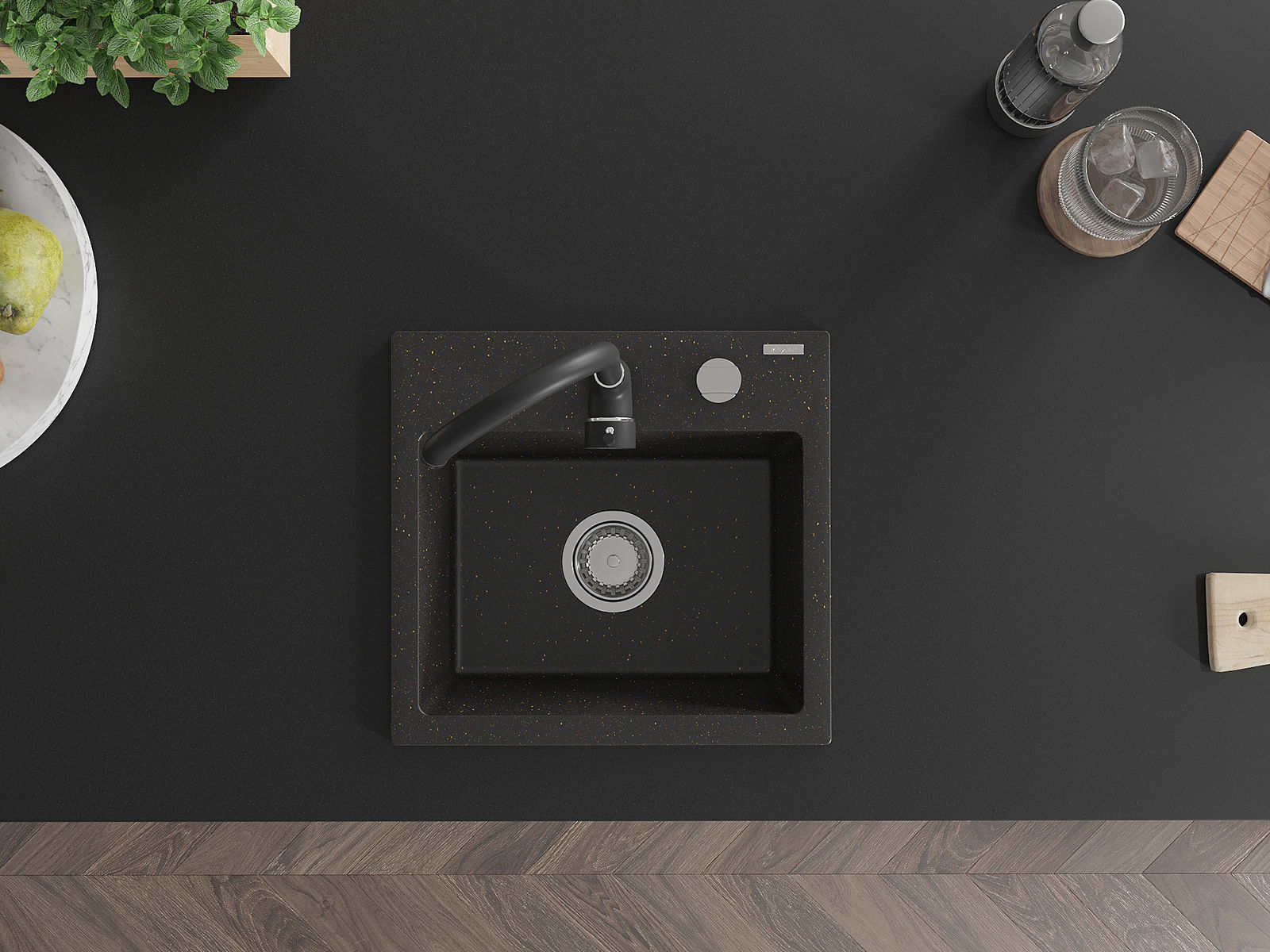 Mexen Milo granito kriauklė su 1 skyriumi ir virtuviniu maišytuvu Telma, juoda/auksinė - 6505-75-670200-70