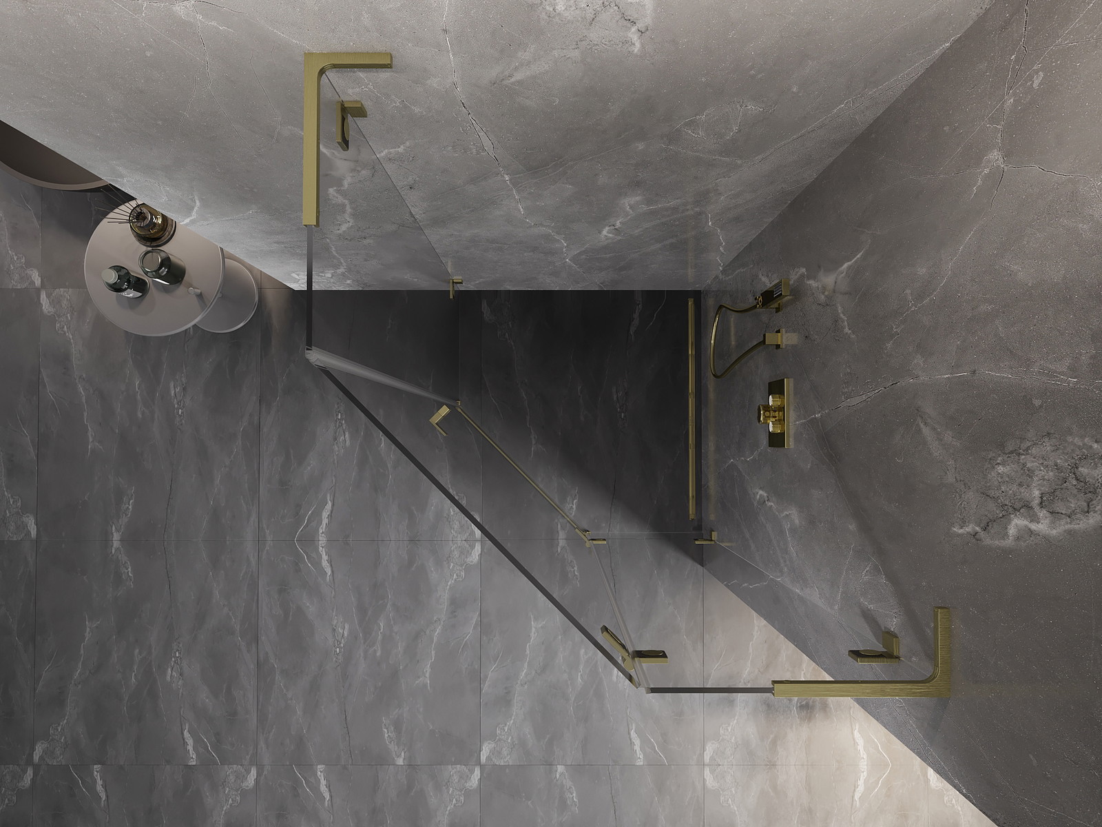 Mexen Lunar L penkiakampė dušo kabina su atveriamomis dešinės pusės durimis, 90 x 90 cm, skaidri, šveistas auksas