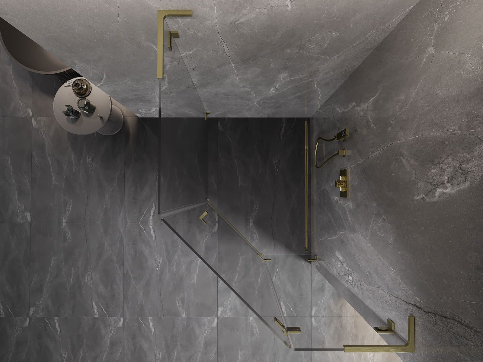 Mexen Lunar L penkiakampė, dešinė pusėje atveriama dušo kabina 90 x 100 cm, skaidri, auksinė matinė - 831L-090P-100L-55-00-P