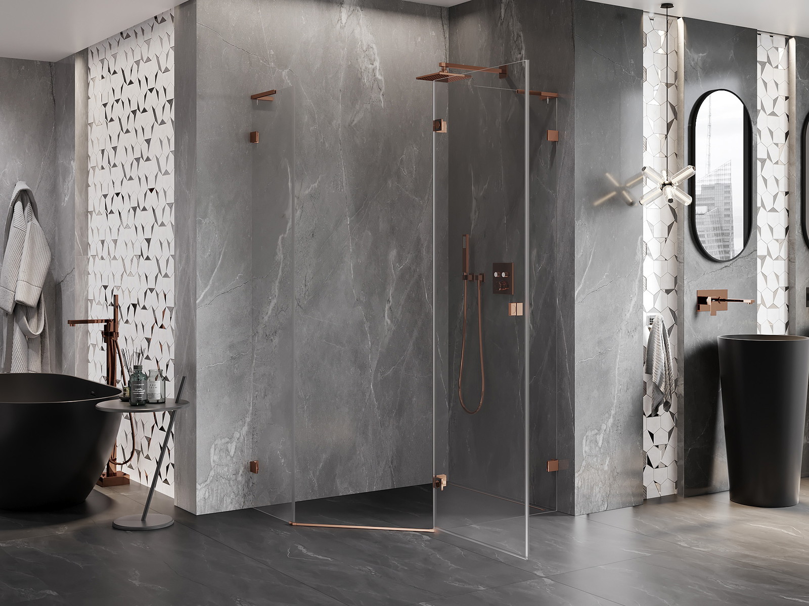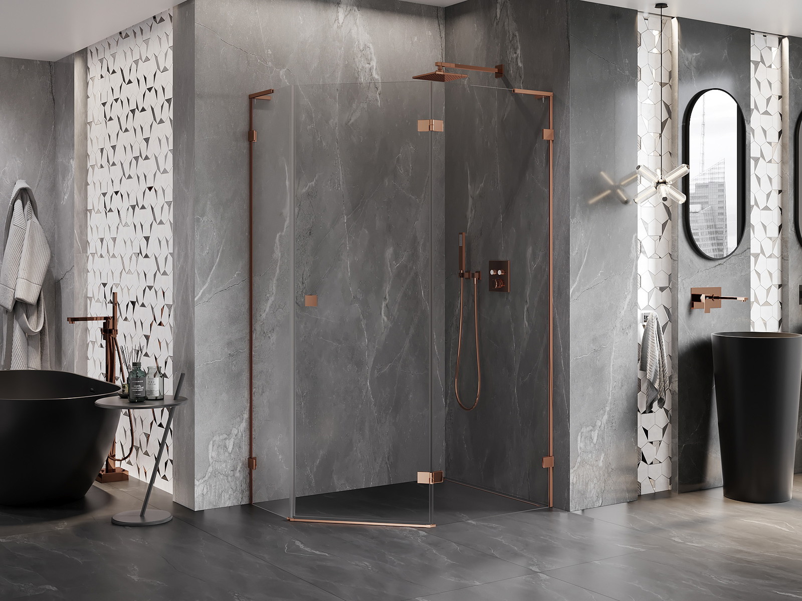 Mexen Lunar L – tai dušo kabina su elegantiška rožiniu auksu apdaila, ideali modernioms vonios kambariams. Jos penkiakampė forma taupo vietą, o 90x80 cm dydis užtikrina patogų naudojimą. Su dešine montavimo sistema ir atidarymo durimis, ji suteikia patogų priėjimą. Aukštos kokybės 8 mm storio grūdintas stiklas yra skaidrus ir lengvai valomas dėl specialios dangos. Aliuminis profilis ir plieninis stabilizatorius padidina stabilumą, o durų pakėlimo ir nuleidimo mechanizmas prideda funkcionalumo. Žalvarinės rankenos ir vyriai, magnetinė juostelė bei elastomerinės tarpinės efektyviai nutekina vandenį. Kabina gali būti montuojama tiek ant dušo padėklo, tiek ant plytelių, su galimybe reguliuoti plotį ir dviem montavimo sistemomis, kurios išlygina sienų nelygumus.