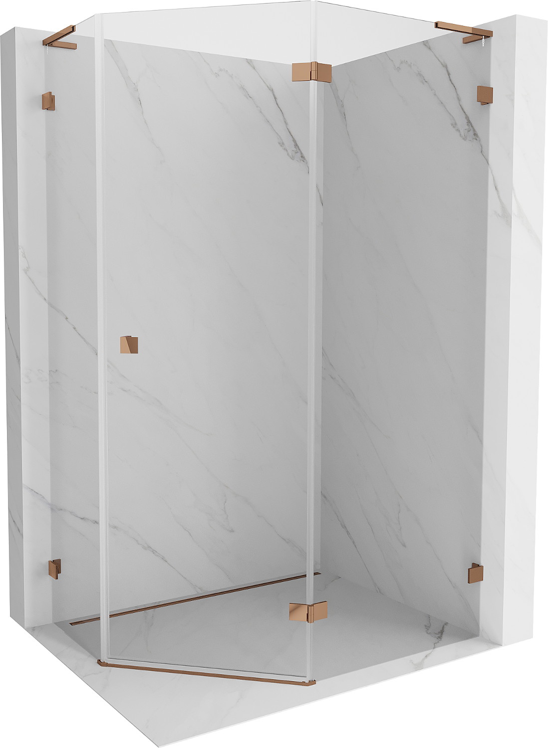 Mexen Lunar L penkiakampė dušo kabina, atveriama dešinė, 90 x 80 cm, skaidrus, rožinis auksas - 831L-090P-080L-60-00-P