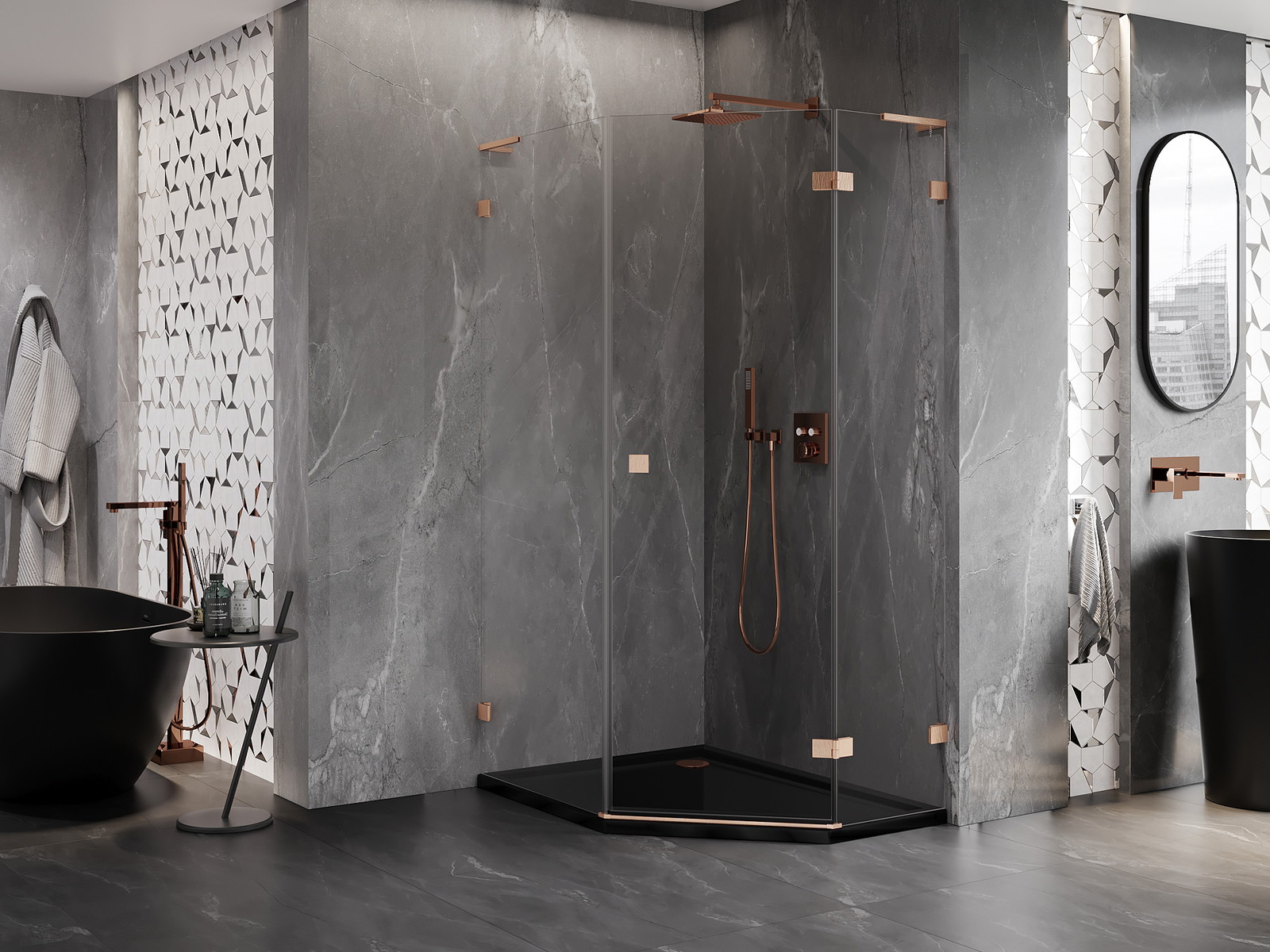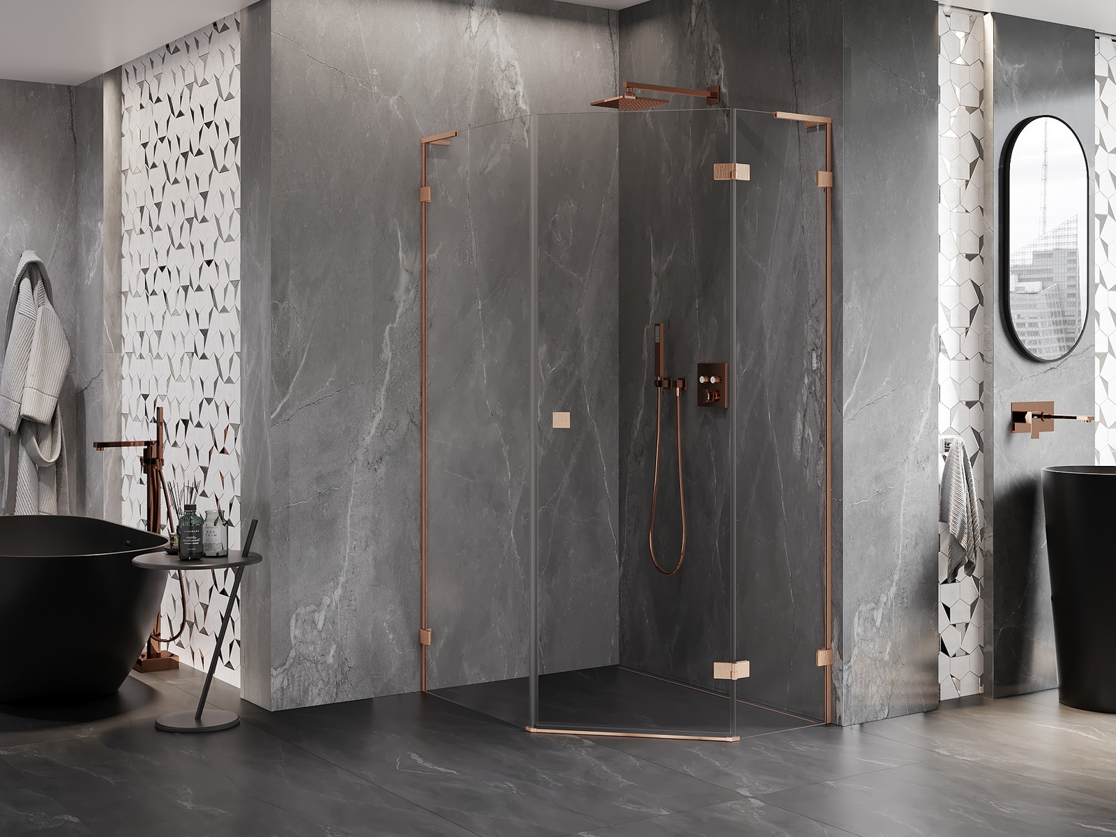 Mexen Lunar L penkiakampė dešininė dušo kabina 80 x 90 cm, skaidri, šlifuotas varis - 831L-080P-090L-65-00-P