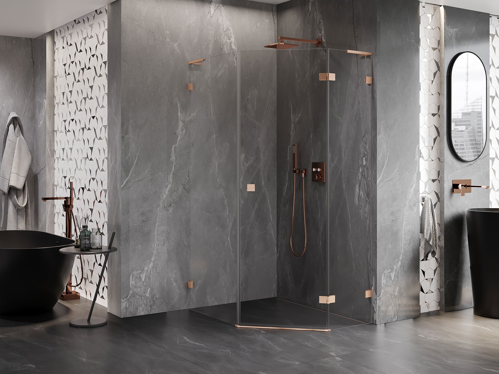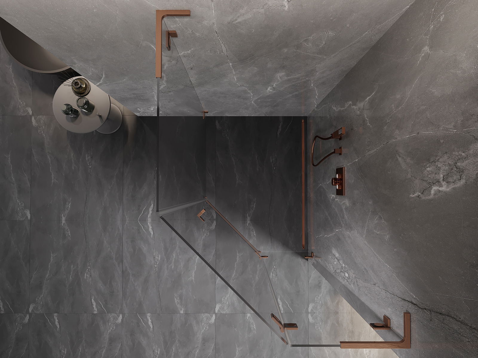 Mexen Lunar L penkiakampis dešinysis atverčiamas dušo kabinas 80 x 100 cm, skaidrus, šlifuotas varis - 831L-080P-100L-65-00-P
