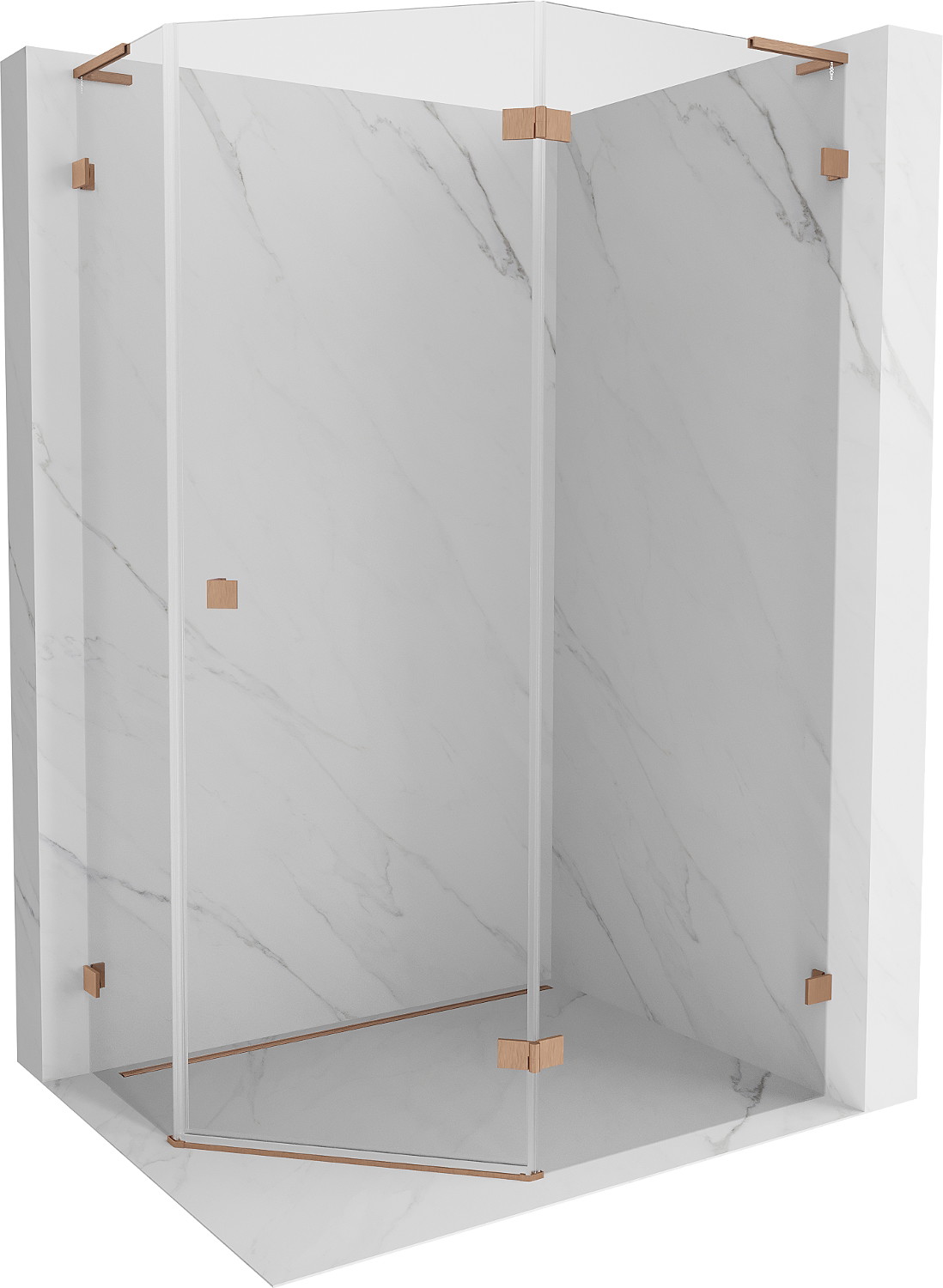 Mexen Lunar L penkiakampė atveriama dešinė dušo kabina 100 x 90 cm, skaidri, šlifuotas varis - 831L-100P-090L-65-00-P