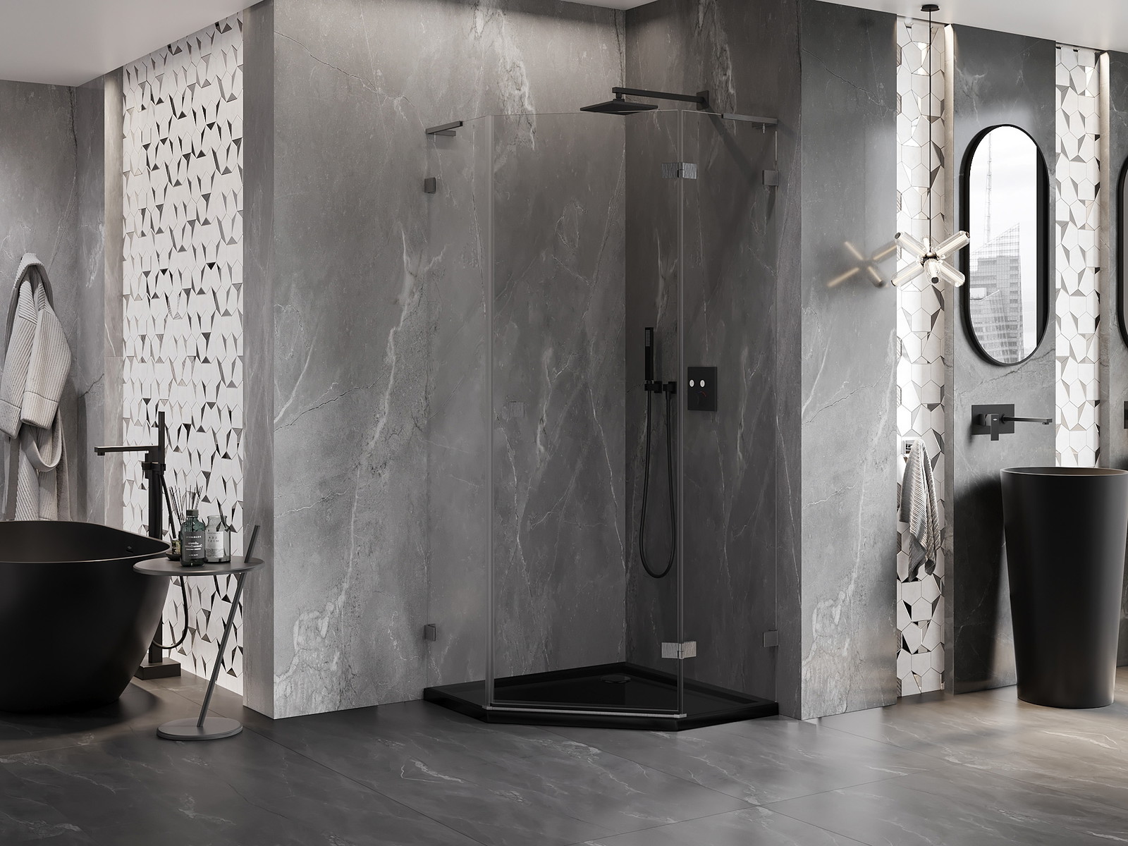 Mexen Lunar L yra elegantiška penkiakampė dušo kabina, idealiai tinkanti šiuolaikiškiems vonios kambariams. Ji siūlo 80x80 cm erdvę su dešinėje montuojamomis atidaromomis durimis, kas užtikrina patogų naudojimą. 200 cm aukštis ir 8 mm storio skaidrus grūdintas stiklas su valymo palengvinančia danga daro ją praktišku pasirinkimu. Stilinga matinė šepetēta pilkojo plieno apdaila, aliuminio profiliai ir plieniniai stabilizatoriai užtikrina ilgaamžiškumą. Be to, montavimo sistemos prisitaiko prie sienų nelygumų.