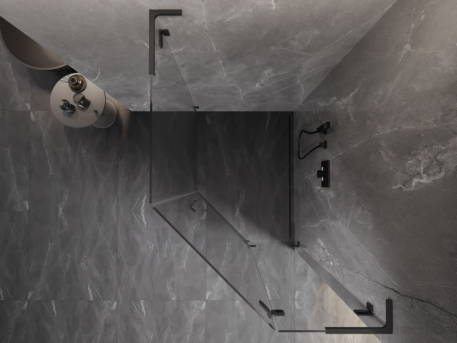 Mexen Lunar L dešinė atidaroma penkiakampė dušo kabina 80x90 cm, skaidri, šlifuotas ginklo pilkumas