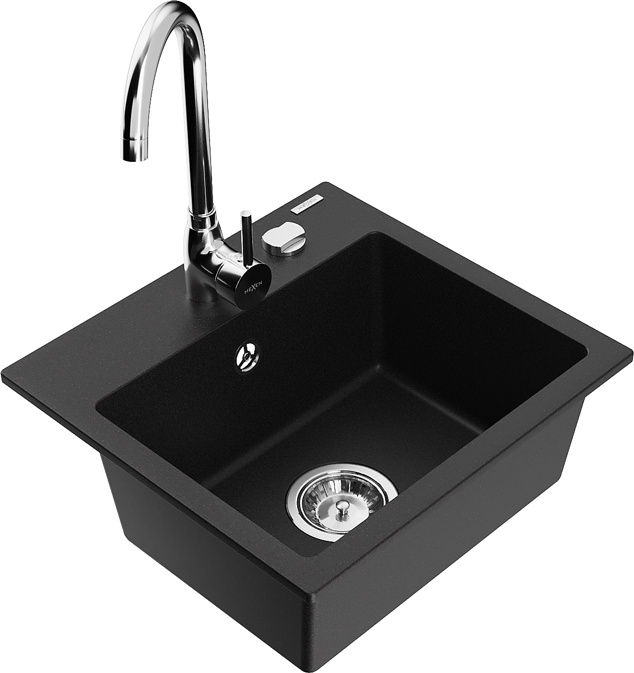 Mexen Milo granitinis vienos kameros praustuvas su virtuviniu maišytuvu Telma, juodas - 6505-77-670200-00