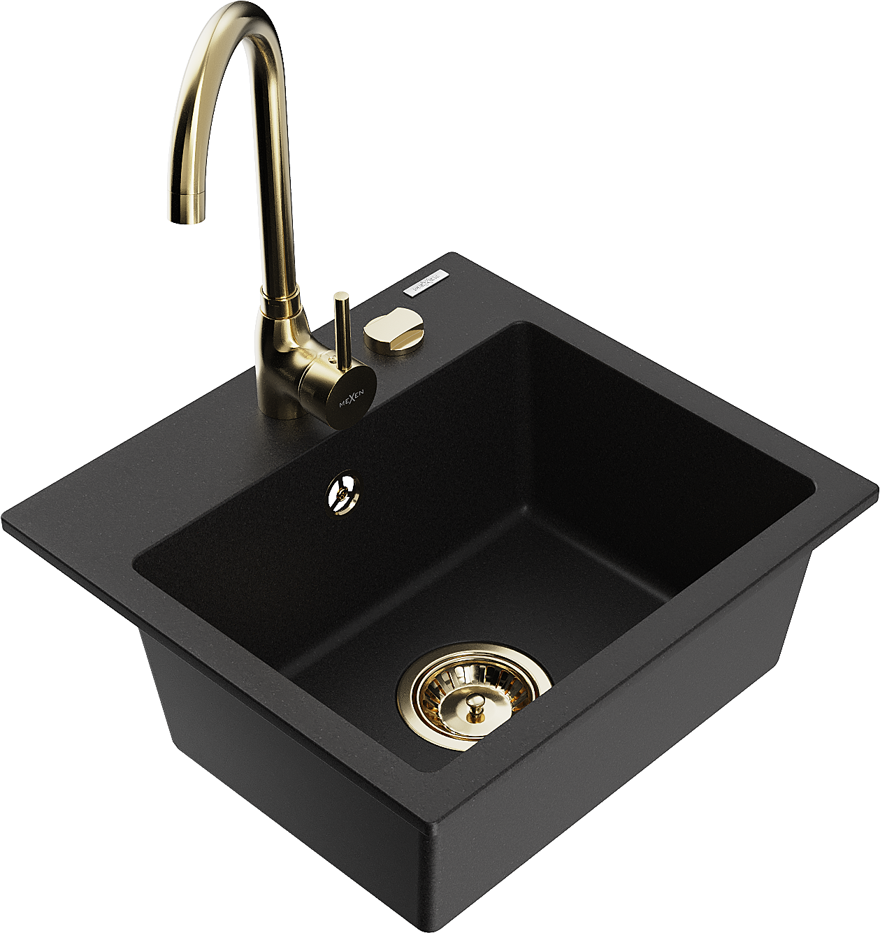 Mexen Milo granito plautuvė su viena kamera ir Telma virtuviniu maišytuvu, juodas - 6505-77-670200-50