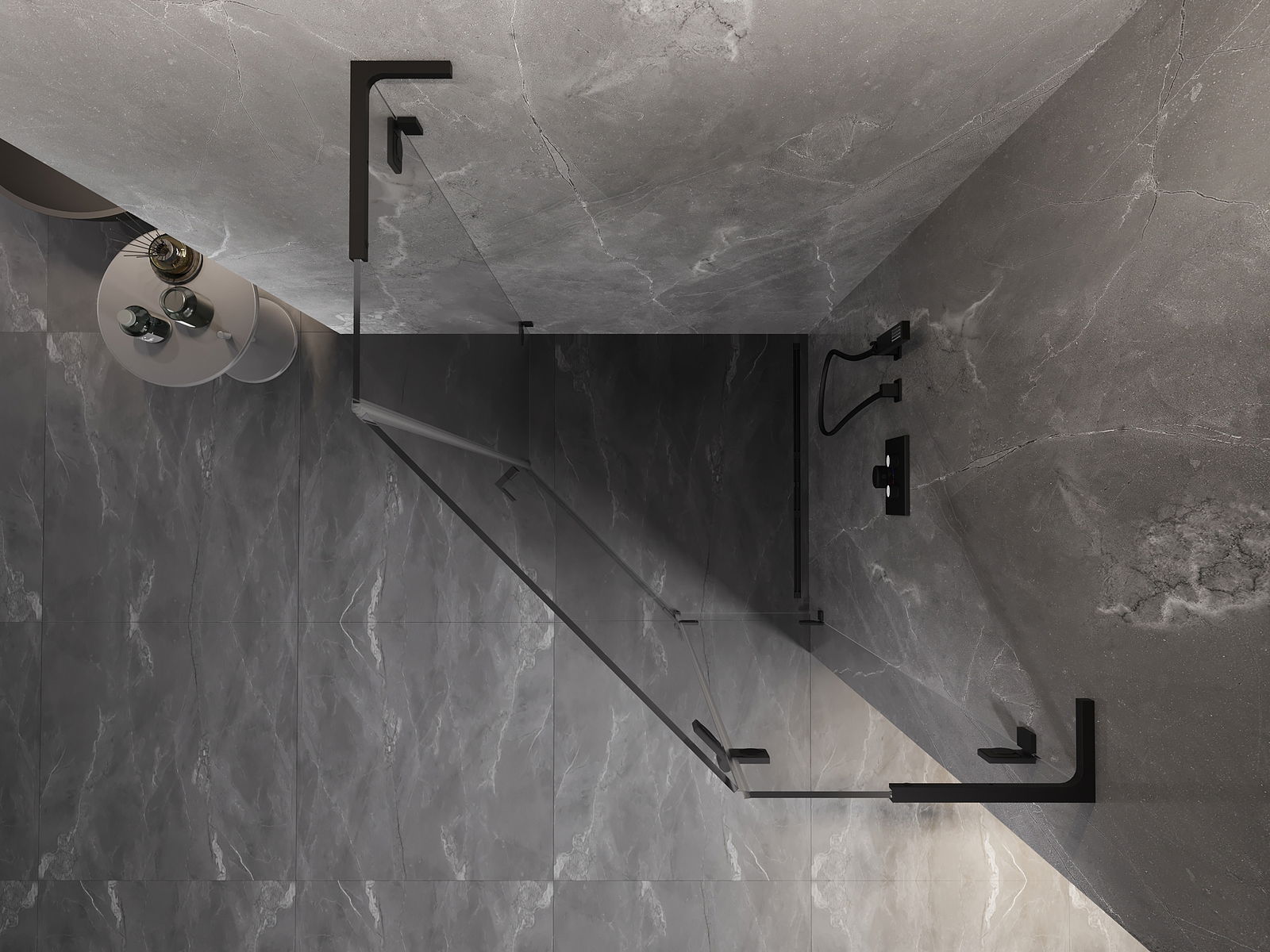 Mexen Lunar L pentagoninė dušo kabina atveriama dešinė 90 x 90 cm, skaidri, juoda - 831L-090P-090L-70-00-P