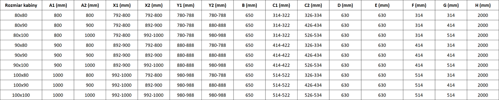 Dydis: 90x90 cm (dešinės durys 90 cm, siena 90 cm)