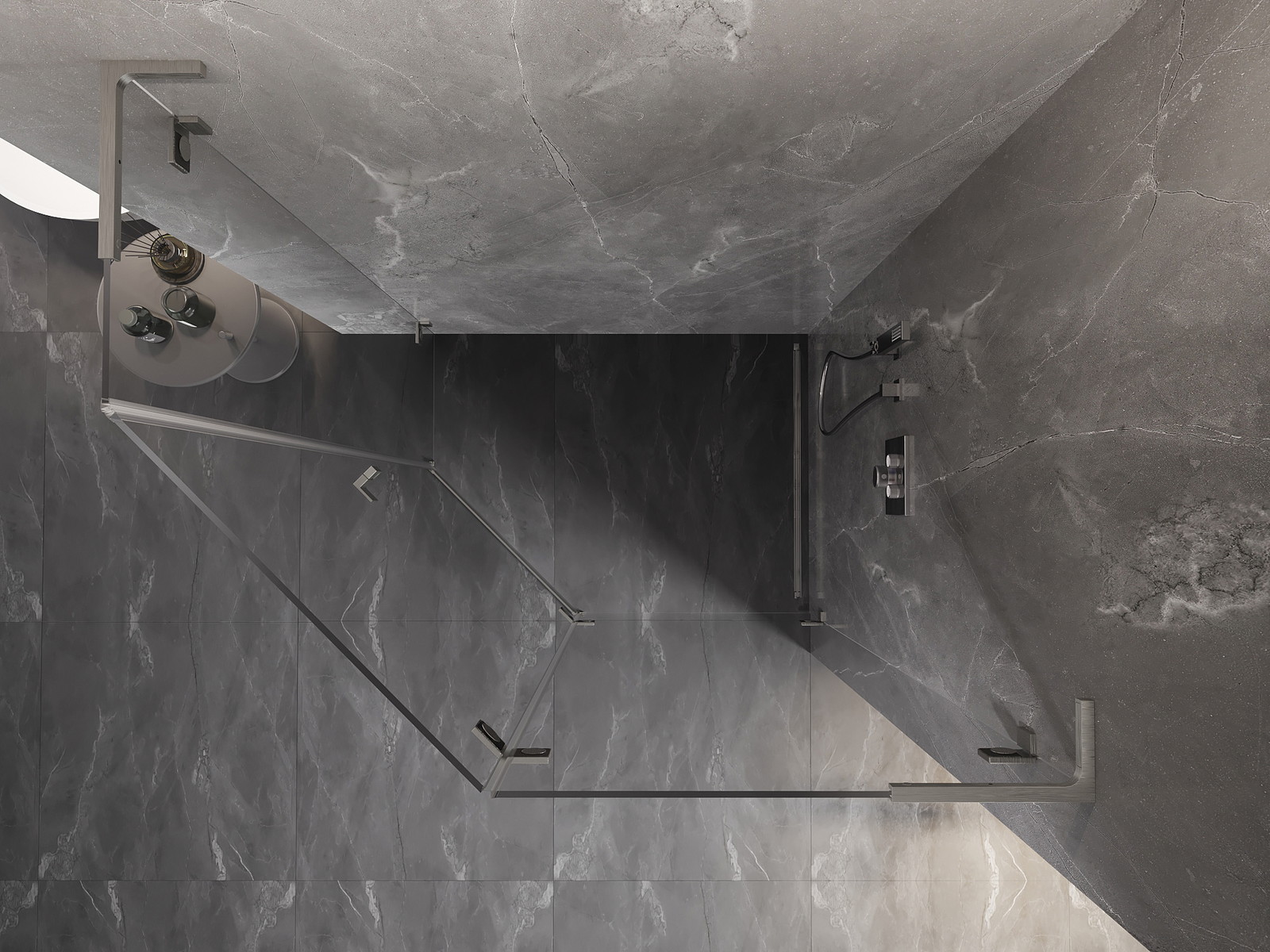 Mexen Lunar L penkiakampė dušo kabina, atveriama dešinė, 90 x 80 cm, skaidri, šlifuotas nikelis - 831L-090P-080L-97-00-P