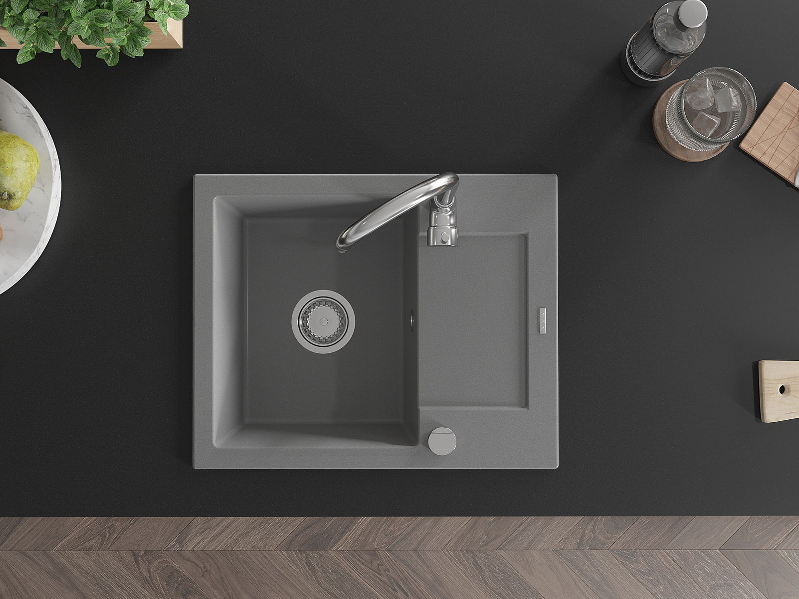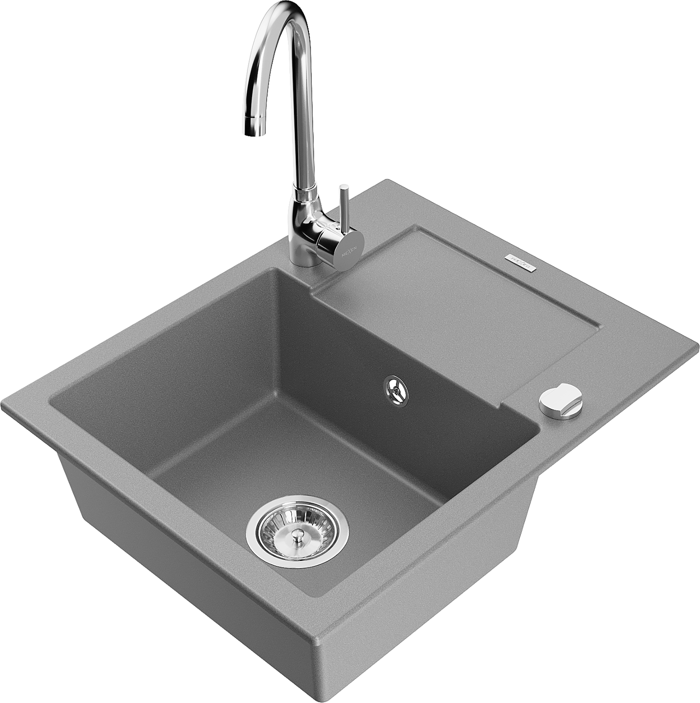 Mexen Enzo vientisas granito plautuvas su nutekėjimo funkcija ir virtuviniu maišytuvu Telma, pilkas - 6506-71-670200-00