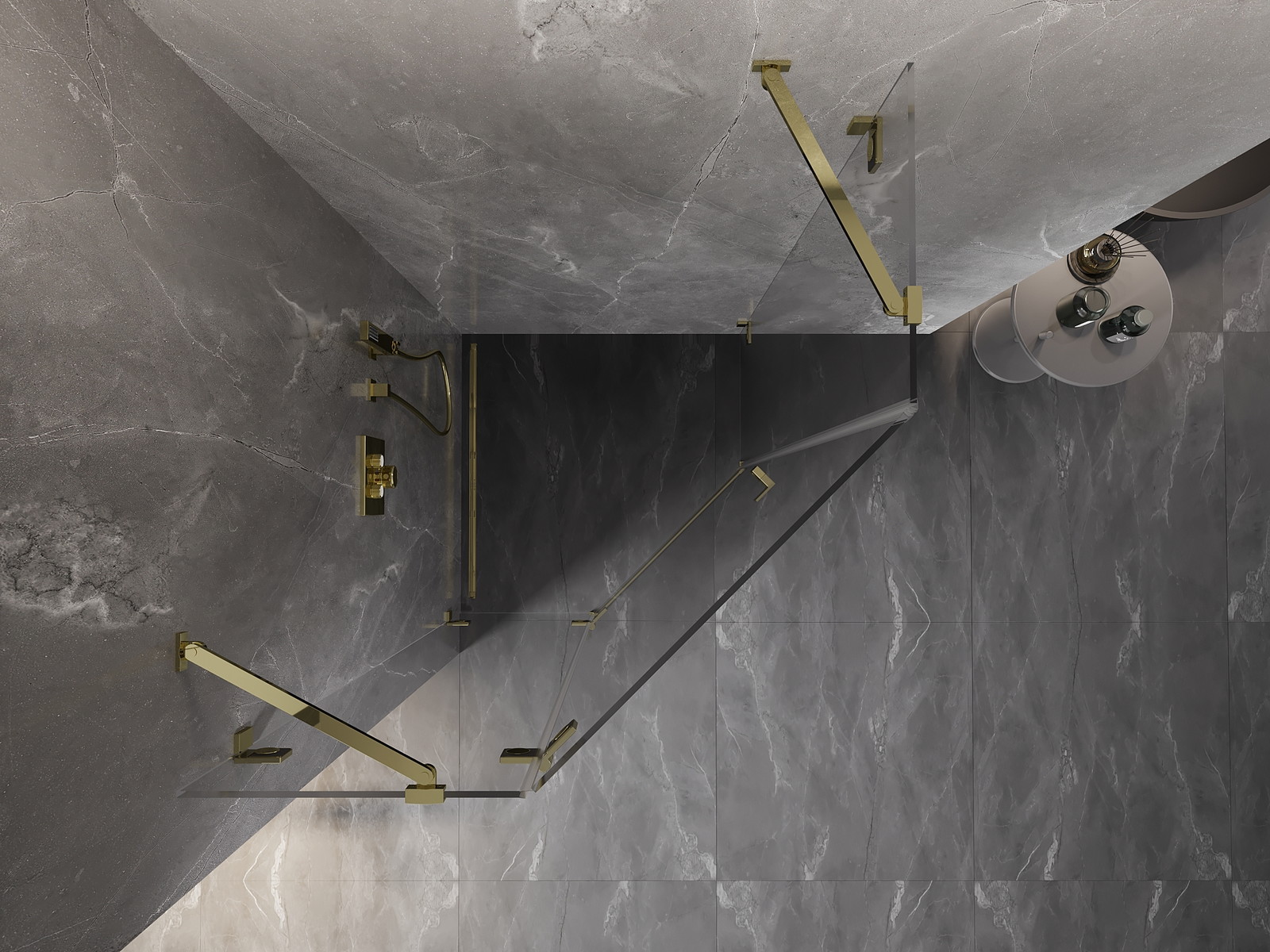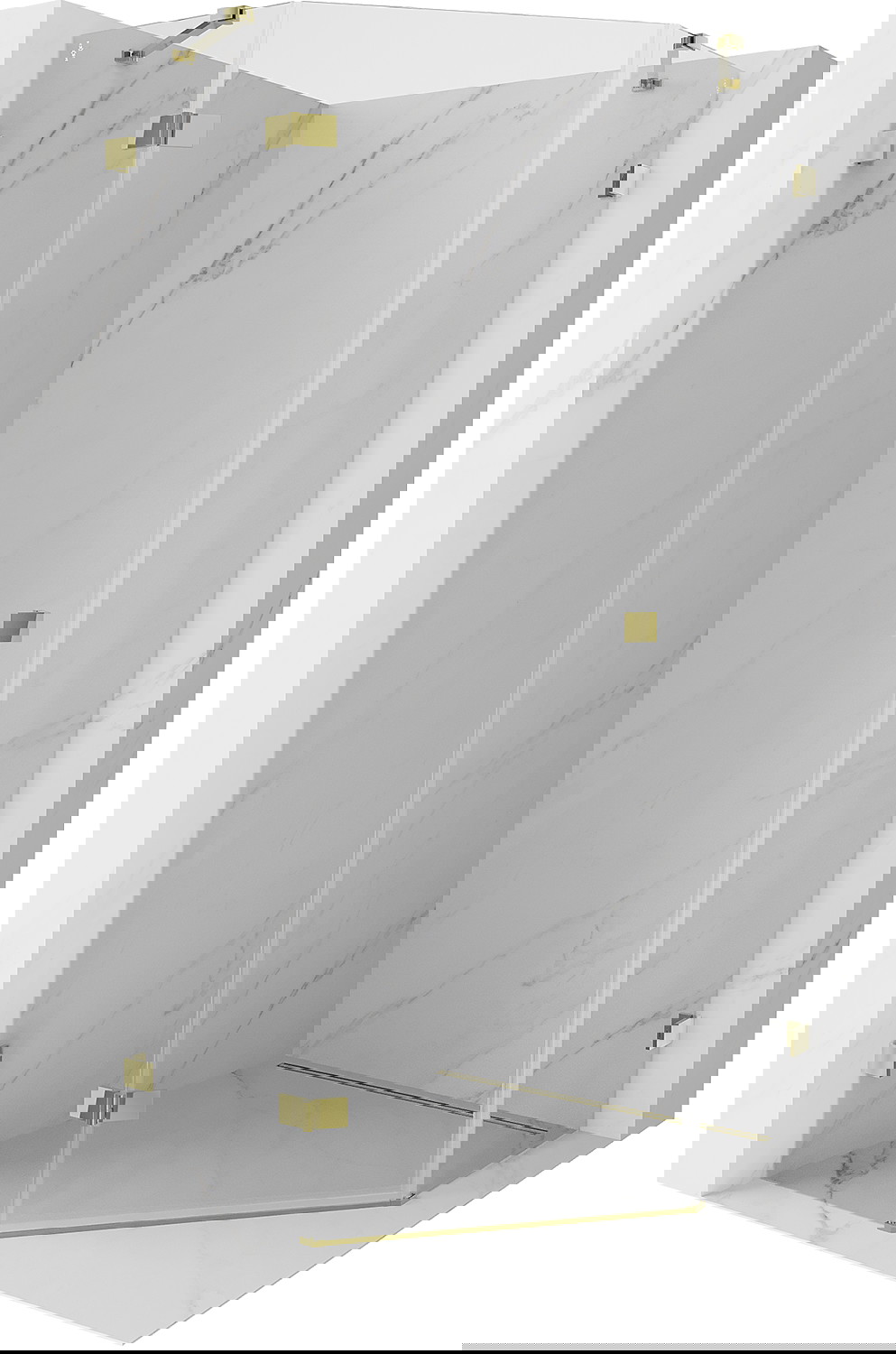 Mexen Lunar penkiakampė kairioji atverčiama dušo kabina 90 x 90 cm, skaidri, auksinė - 831-090L-090P-50-00-L