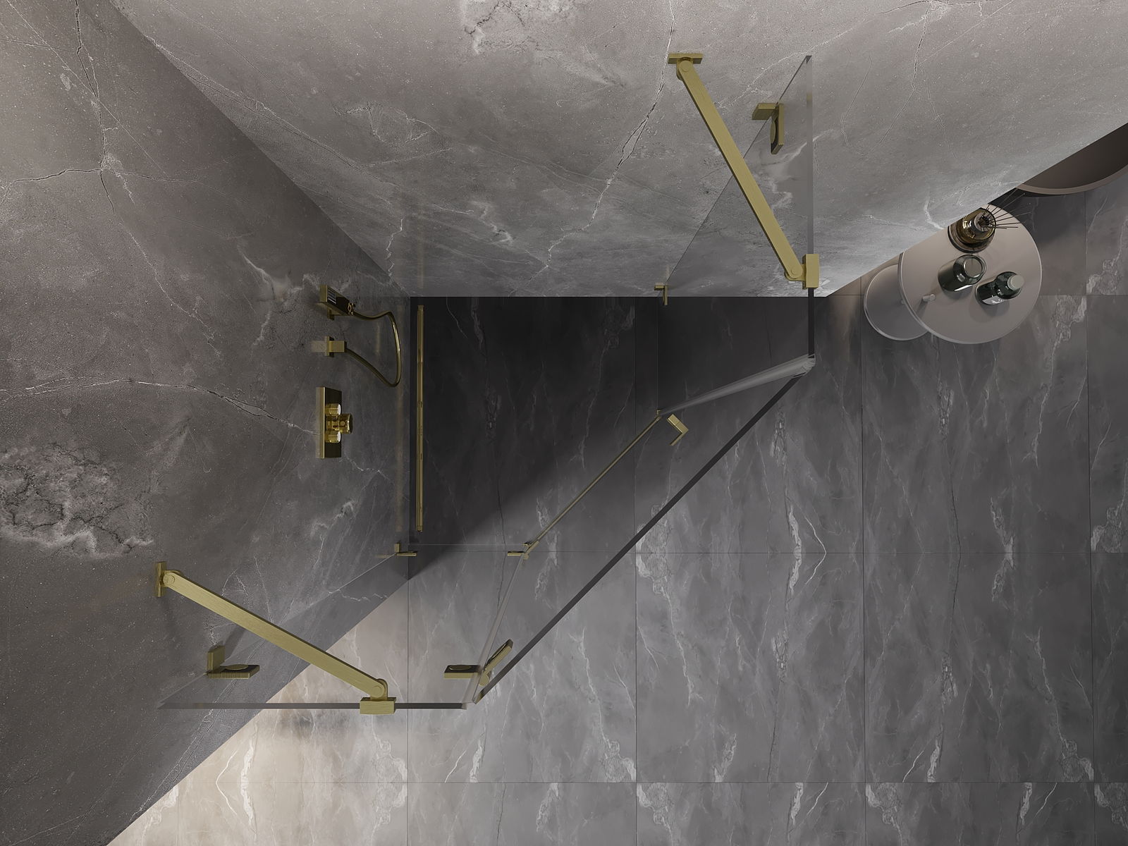 Mexen Lunar penkiakampė atveriama dušo kabina, kairė 80 x 80 cm, skaidri, auksinė šlifuota - 831-080L-080P-55-00-L
