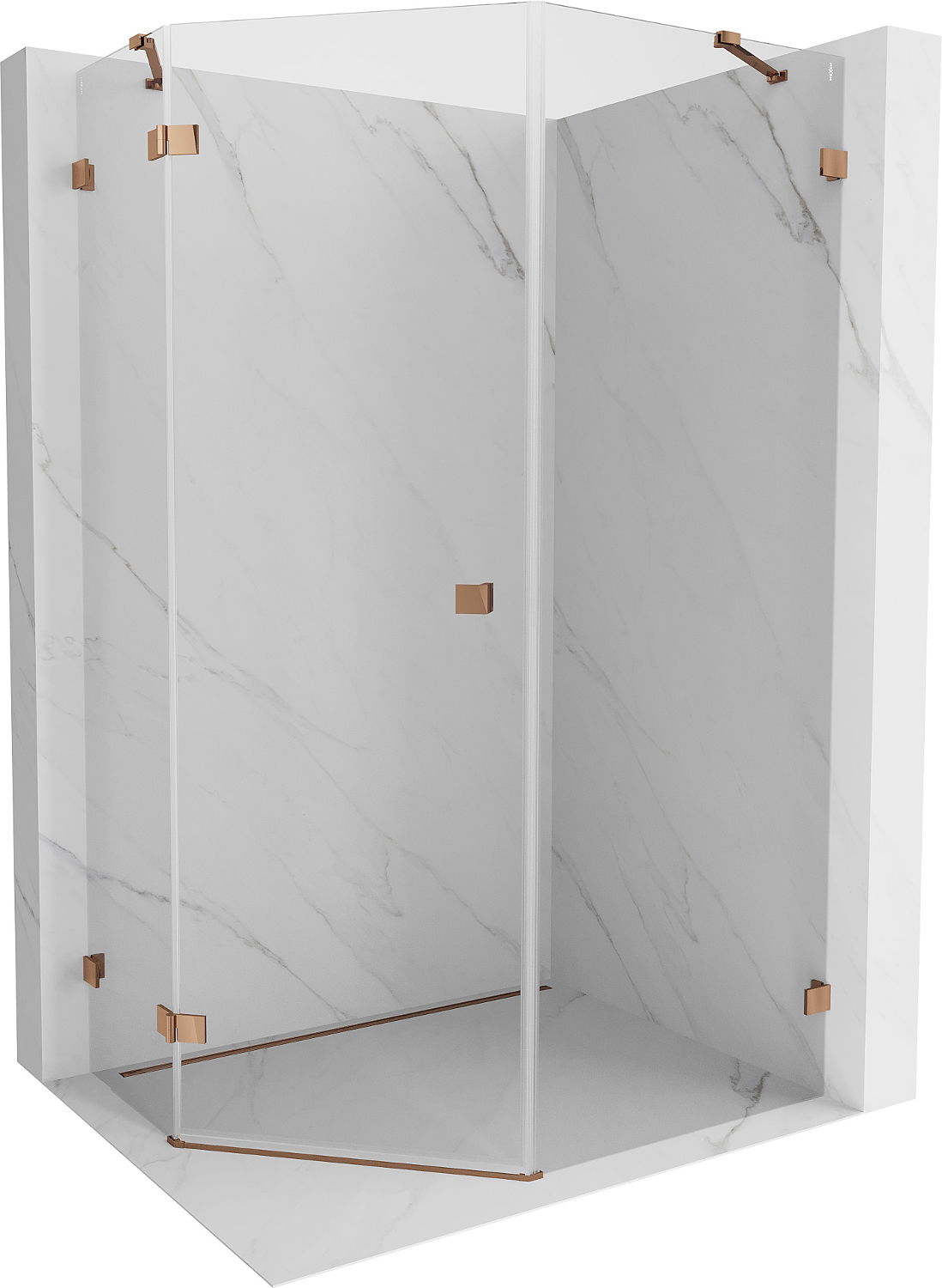 Mexen Lunar penkiakampė dušo kabina su kairiniu atidarymu 90 x 100 cm, skaidri, rožinio aukso spalvos - 831-090L-100P-60-00-L