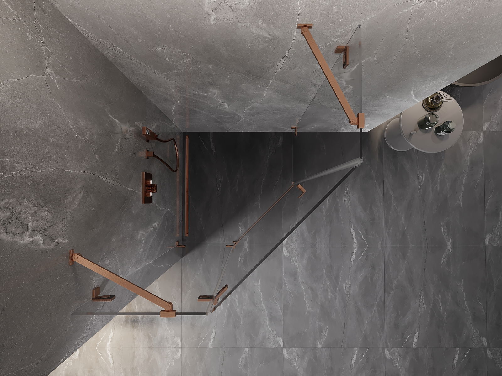 Mexen Lunar penkiakampė dušo kabina, atveriama, kairė 80 x 80 cm, skaidri, šepečiu valyta varis - 831-080L-080P-65-00-L