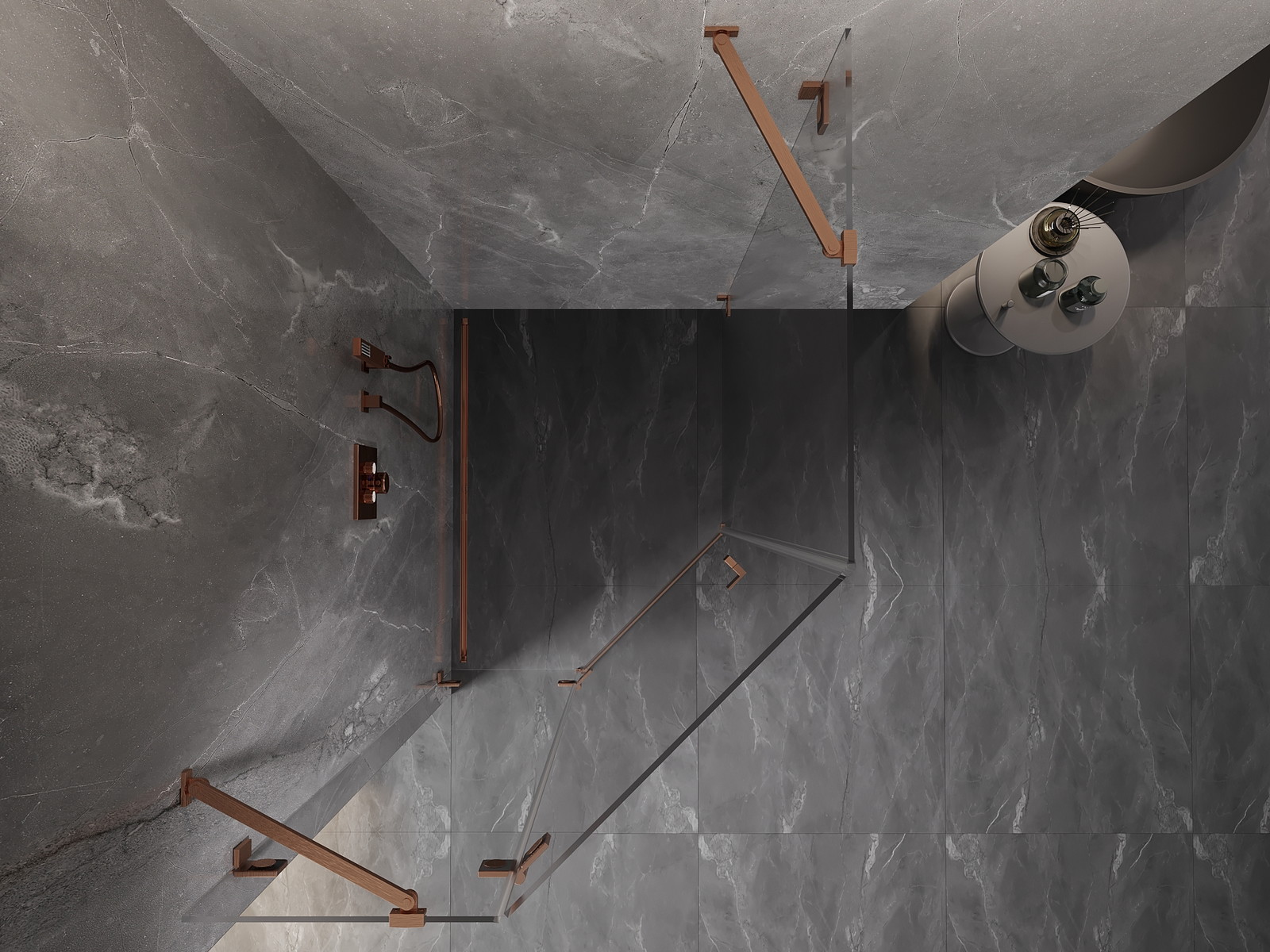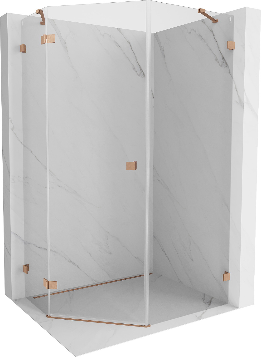 Mexen Lunar penkiakampė atveriama dušo kabina, kairė 90 x 100 cm, permatoma, šepečiu valyta varis - 831-090L-100P-65-00-L