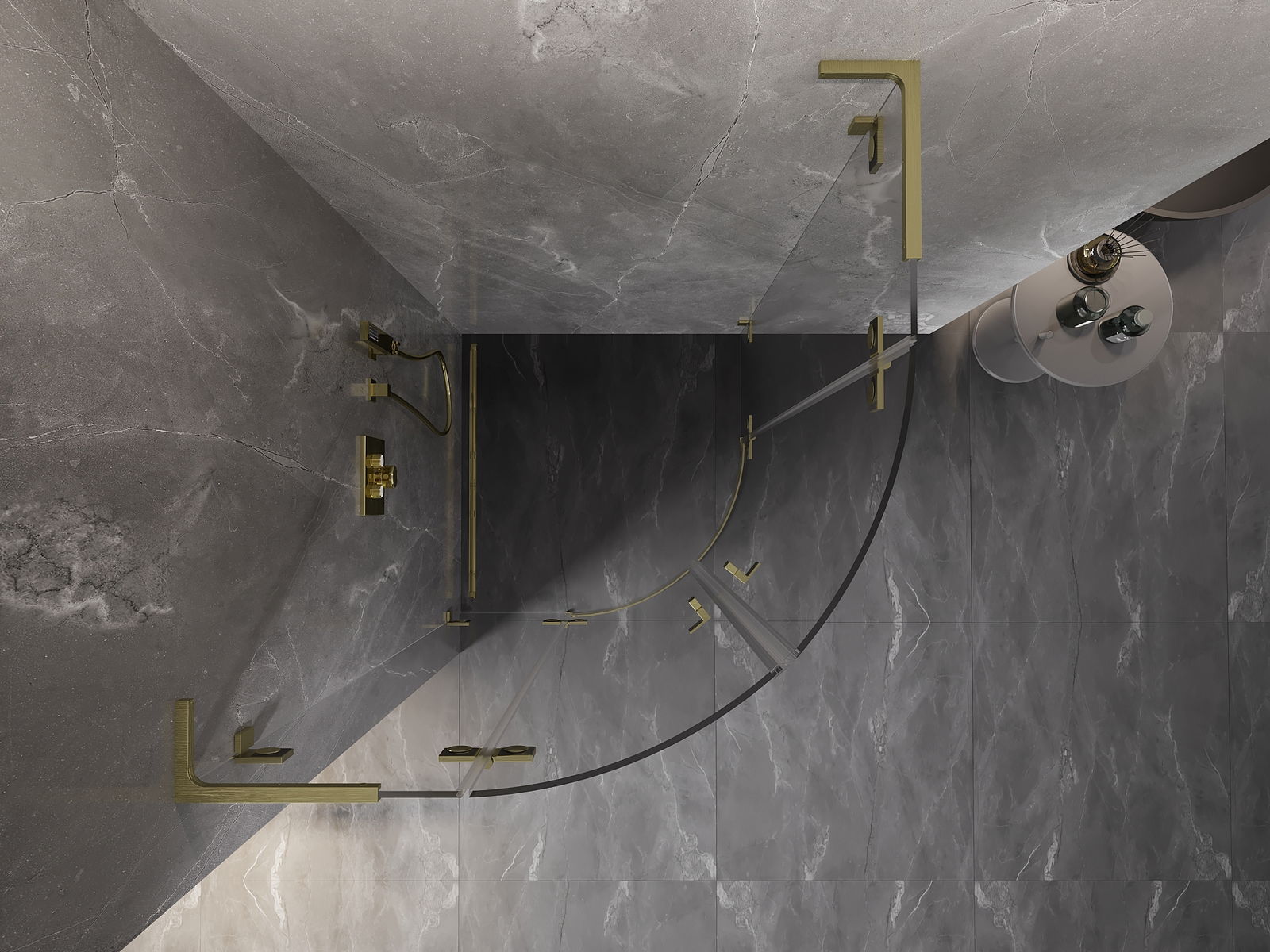Mexen Lunar L pusapvalė dušo kabina atsilenkianti 70 x 70 cm, skaidri, auksinė šlifuota - 833L-070L-070P-55-00