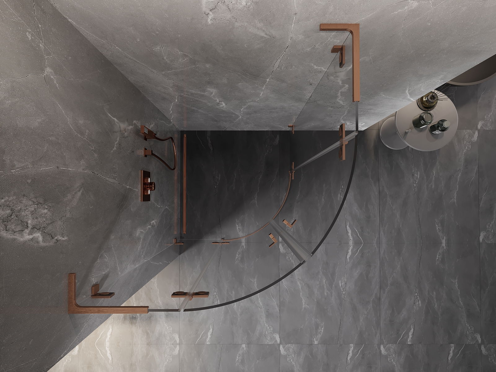 Mexen Lunar L pusapvalė dušo kabina su varstomomis durimis 90 x 90 cm, skaidri, šepetėtas varis - 833L-090L-090P-65-00