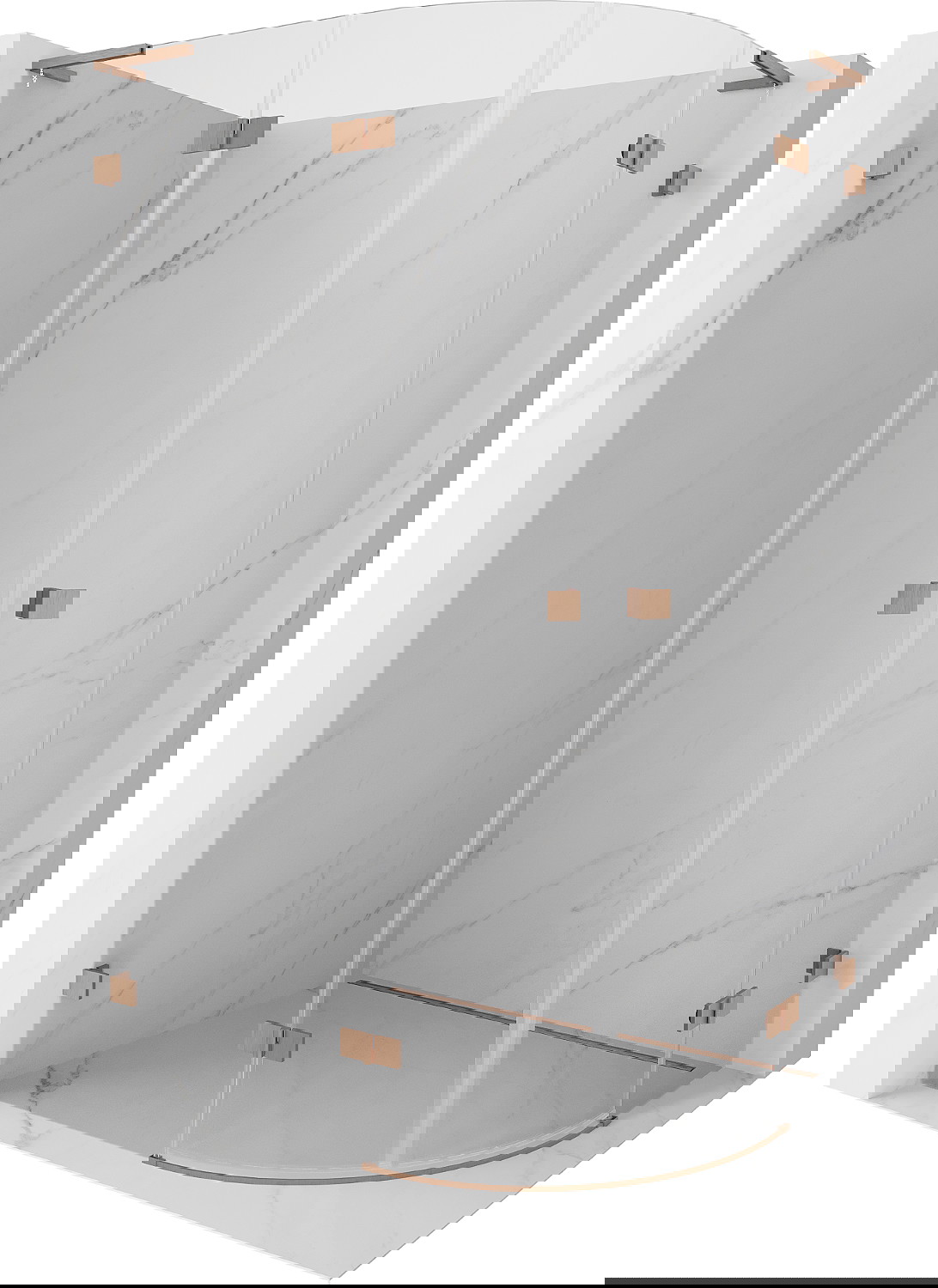 Mexen Lunar L pusapvalė dušo kabina su kairiuoju durų atidarymu 100 x 90 cm, skaidri, šlifuoto vario apdaila