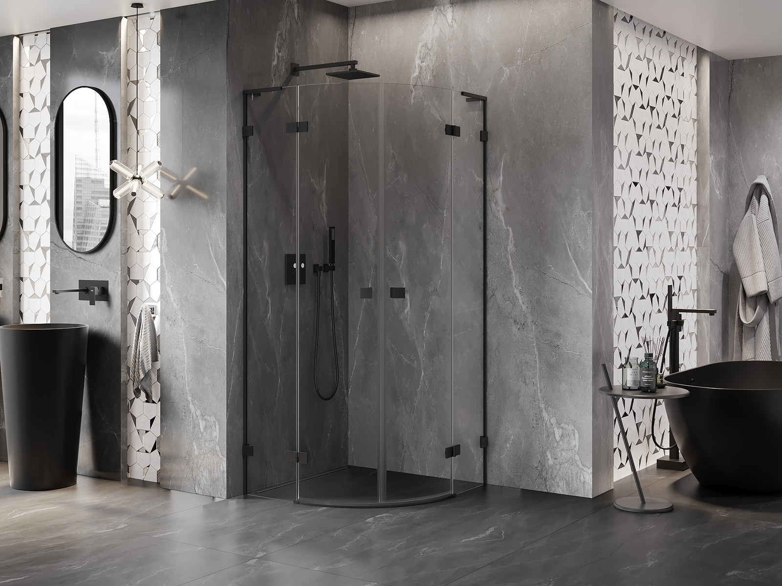 Mexen Lunar L pusapvalė dušo kabina su atidaromomis durimis, 100 x 100 cm, permatoma, juoda - 833L-100L-100P-70-00