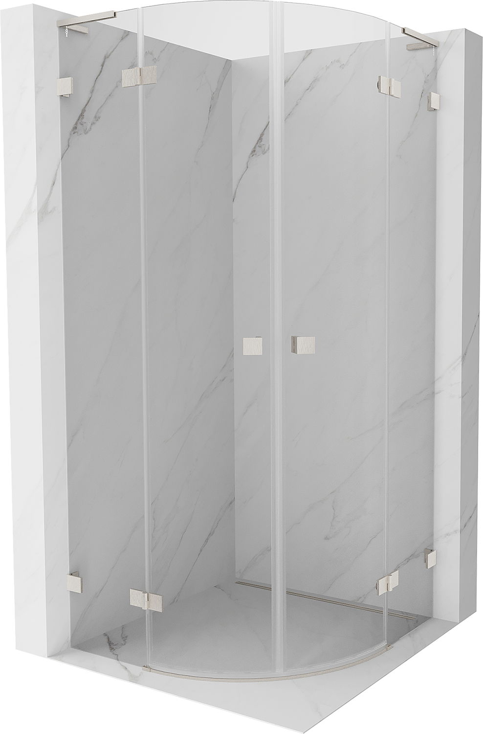 Mexen Lunar L pusapvalė dušo kabina su vyriu 90 x 90 cm, skaidrus, šepečiu nikelis - 833L-090L-090P-97-00
