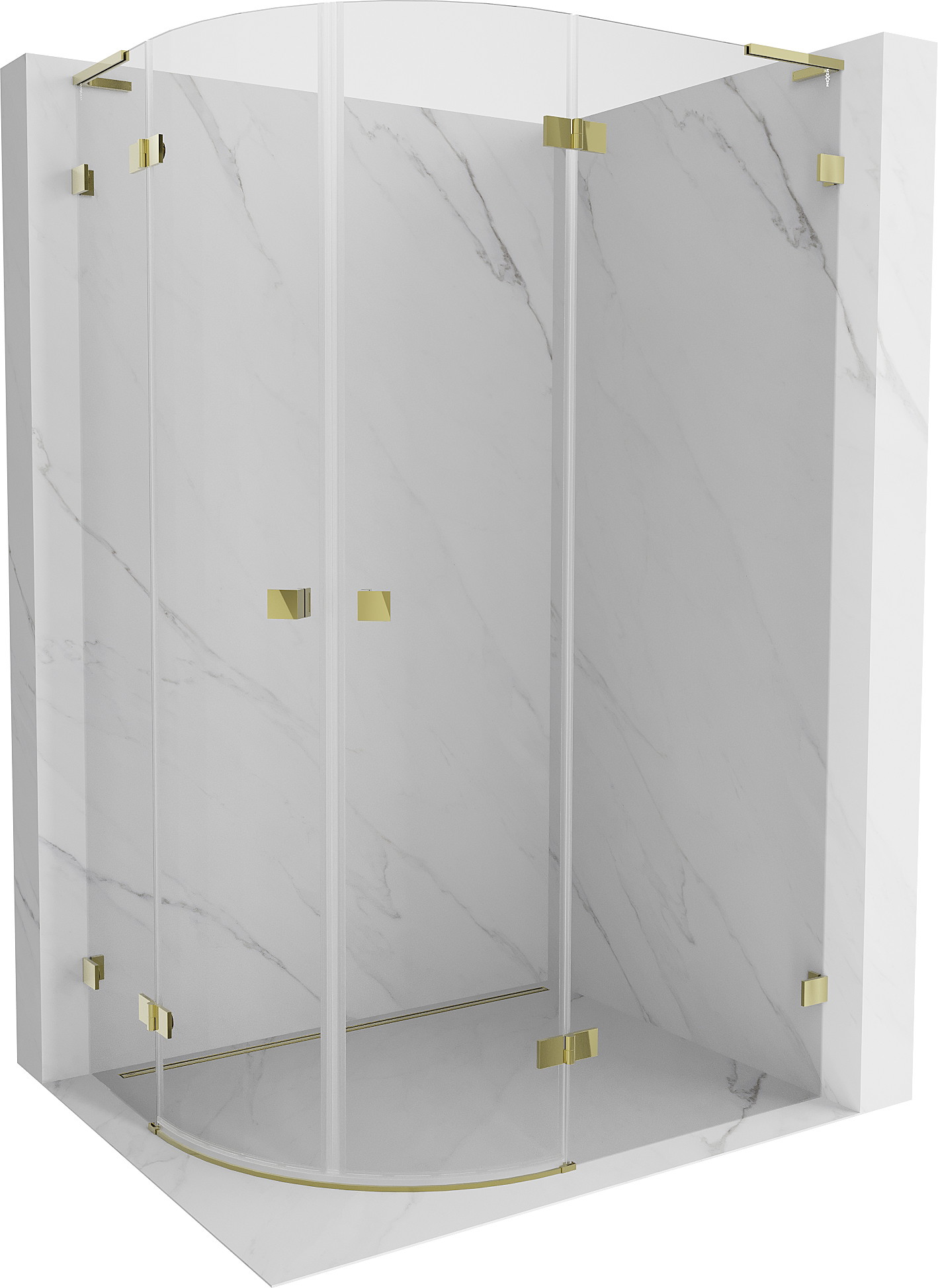 Mexen Lunar L pusrutulio formos dušo kabina su varstomomis durimis, dešinė 100 x 90 cm, skaidri, auksinė