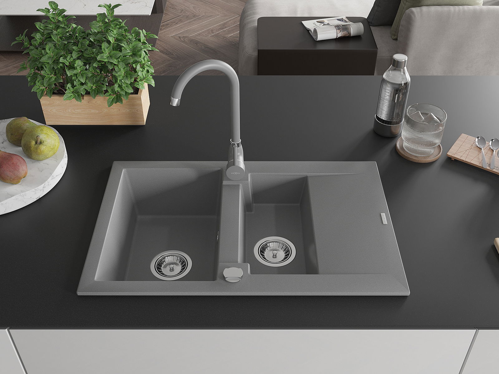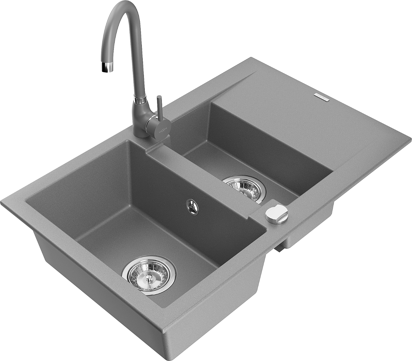 Mexen Gaspar granitinė 1,5 dubens plautuvė su nutekėjimu ir virtuviniu maišytuvu Telma, pilka - 6507-71-670200-71