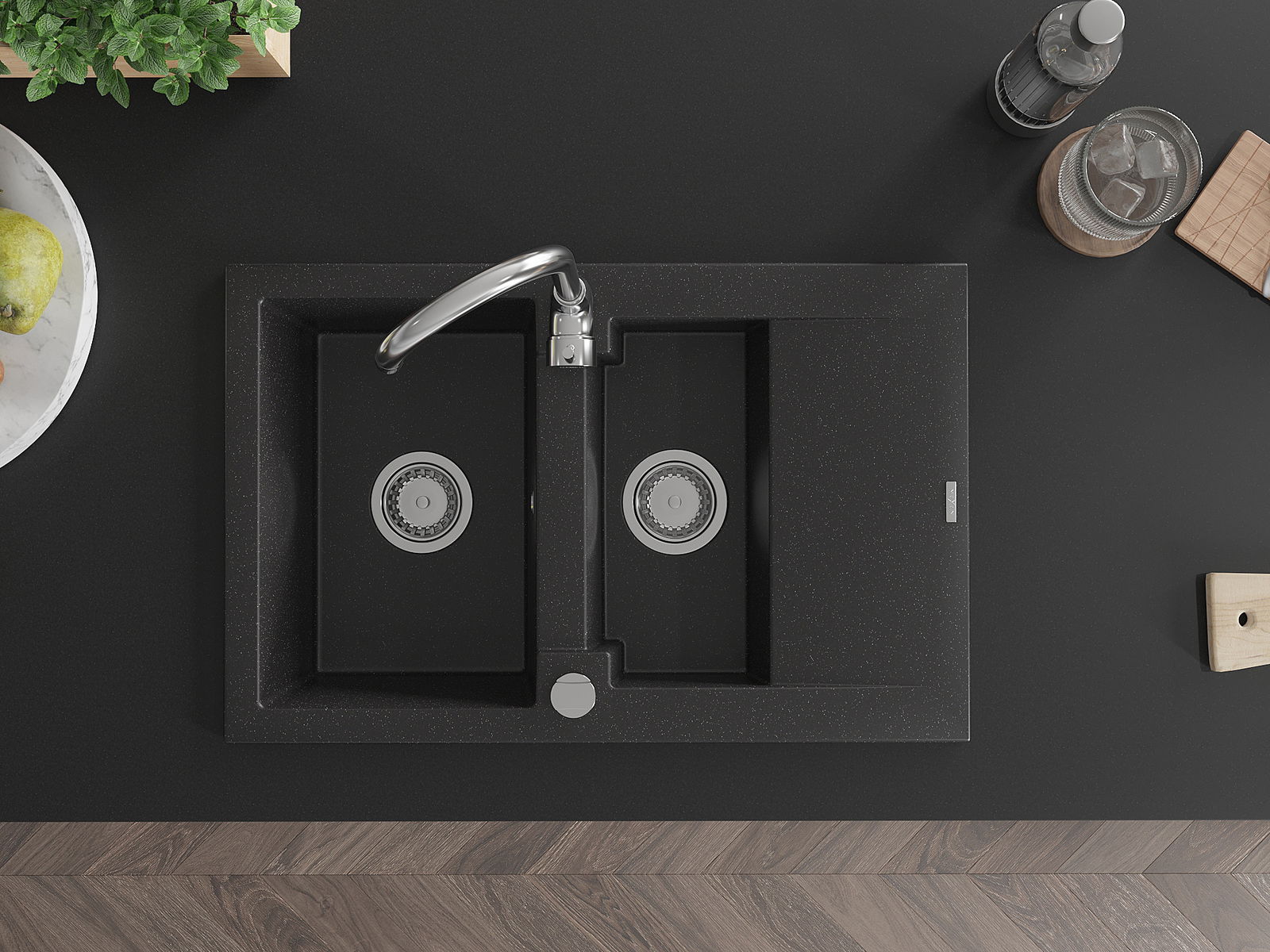 Dėl universalios tvirtinimo sistemos plautuvė yra pakeičiama, o lašintuvas gali būti sumontuotas ant stalviršio kairėje arba dešinėje pusėje. Tokiu būdu galite lengvai pritaikyti pusę pagal savo poreikius ir sąlygas.