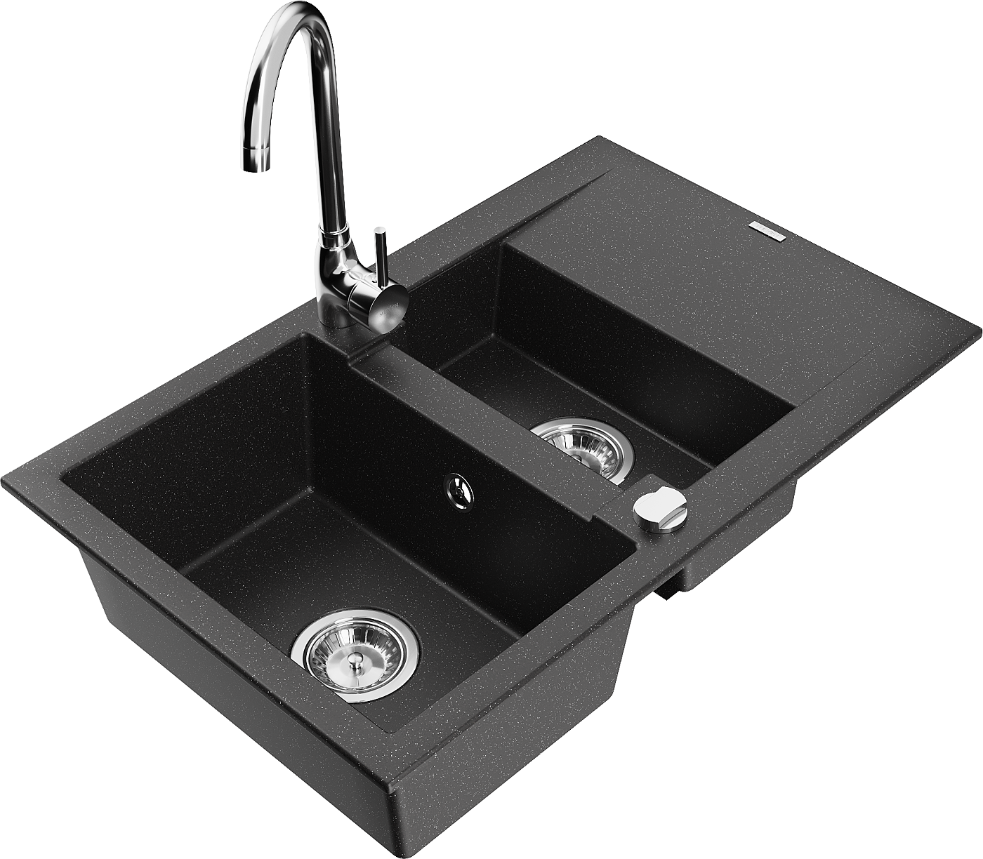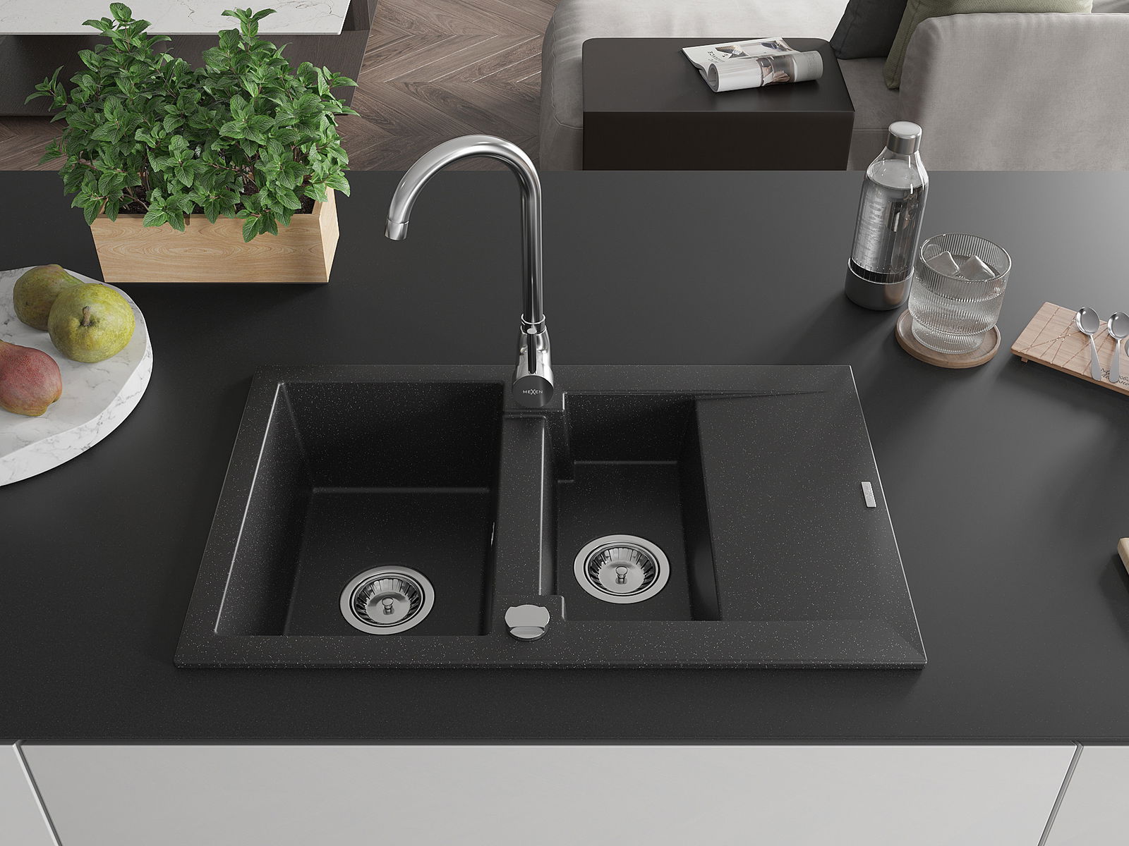 Mexen Gaspar granitinis 1,5 skyriaus kriauklė su lašintuvu ir Telma virtuvės maišytuvu, juodas/sidabrinis - 6507-73-670200-00