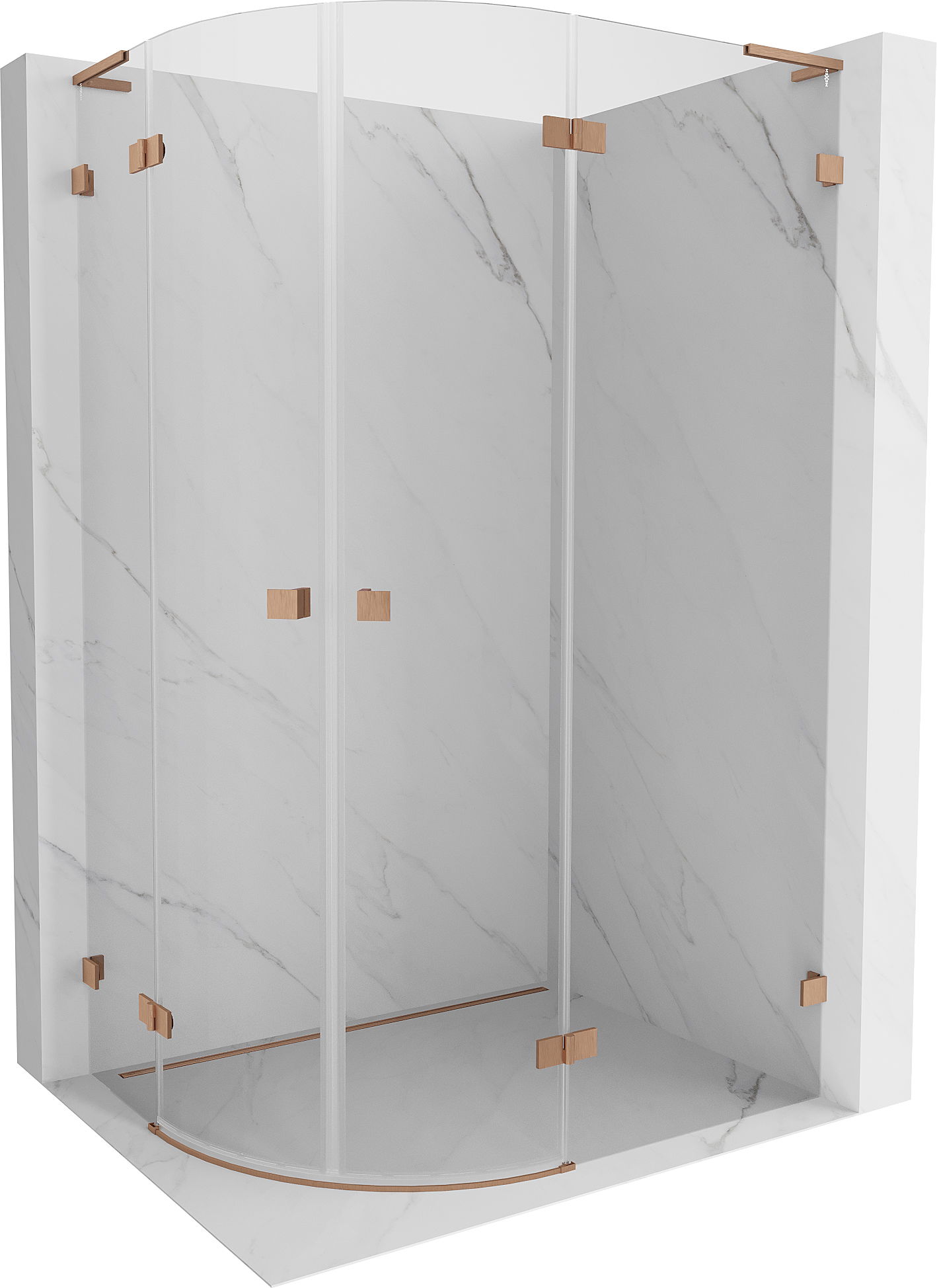 Mexen Lunar L pusapvalė dešinė atveriama dušo kabina 80 x 70 cm, skaidri, šlifuoto vario - 833L-080P-070L-65-00