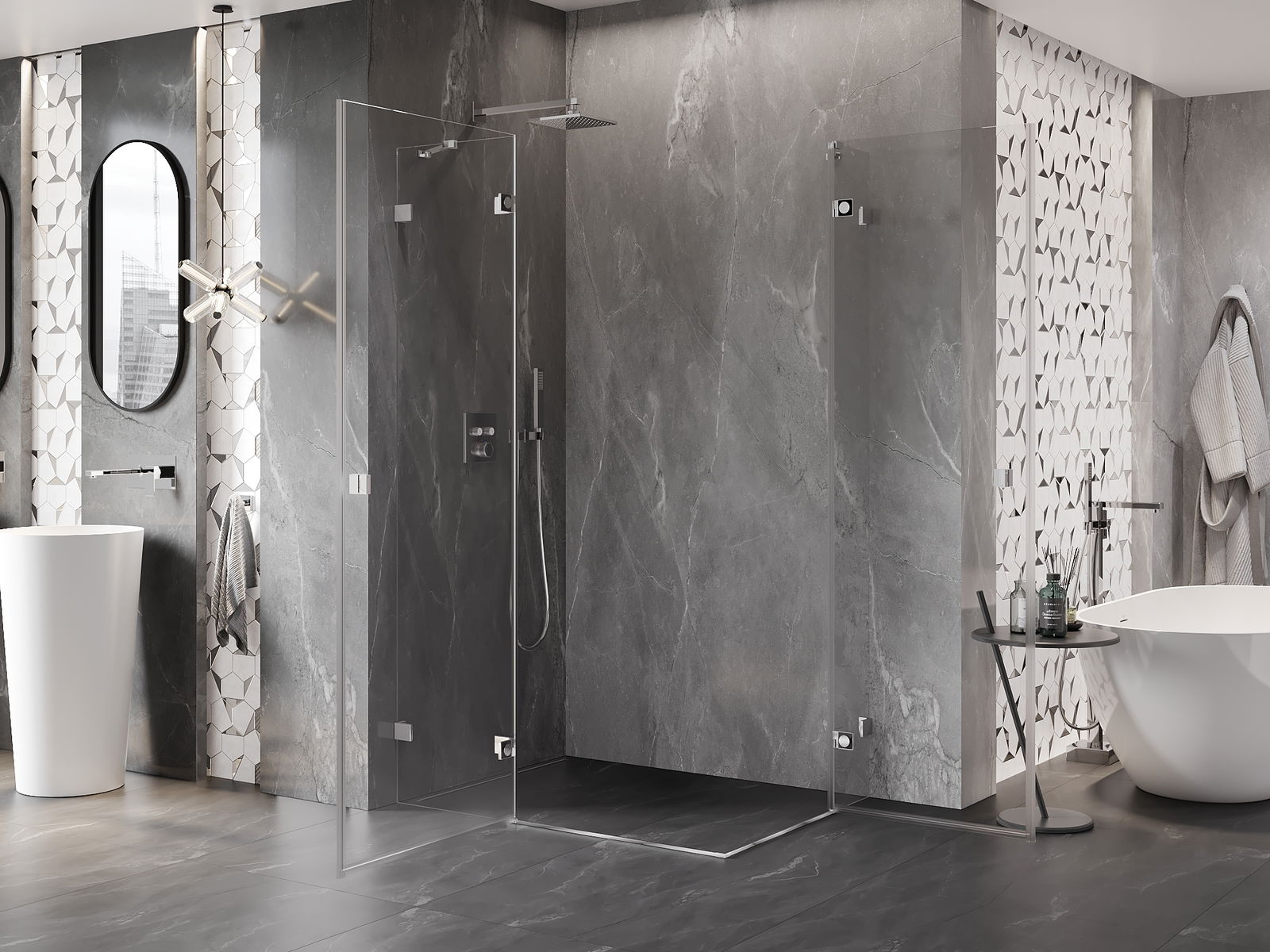 Produktą, atsižvelgiant į poreikius, galima sumontuoti tiek ant dušo padėklo, tiek tiesiogiai ant grindų. Universalus montavimo būdas leidžia pritaikyti produktą įvairių tipų vonios kambariams ir erdvės konfigūracijoms.