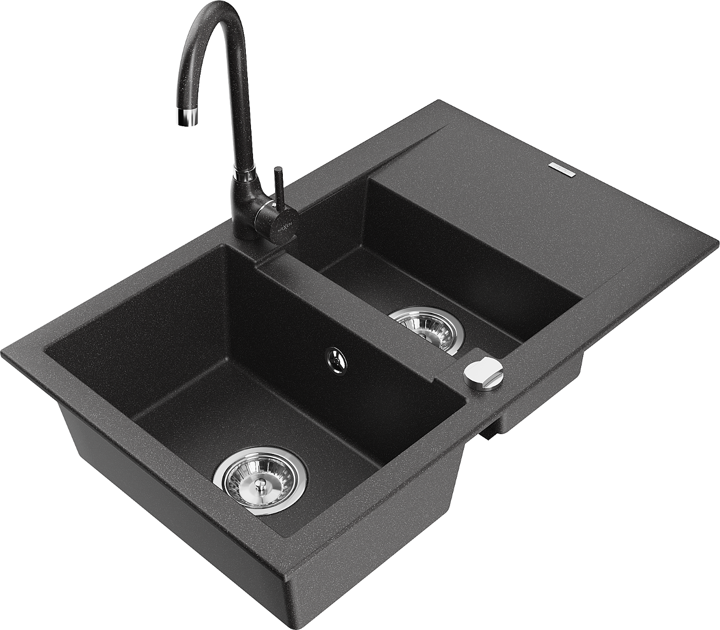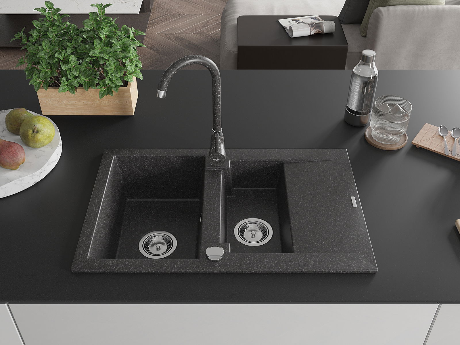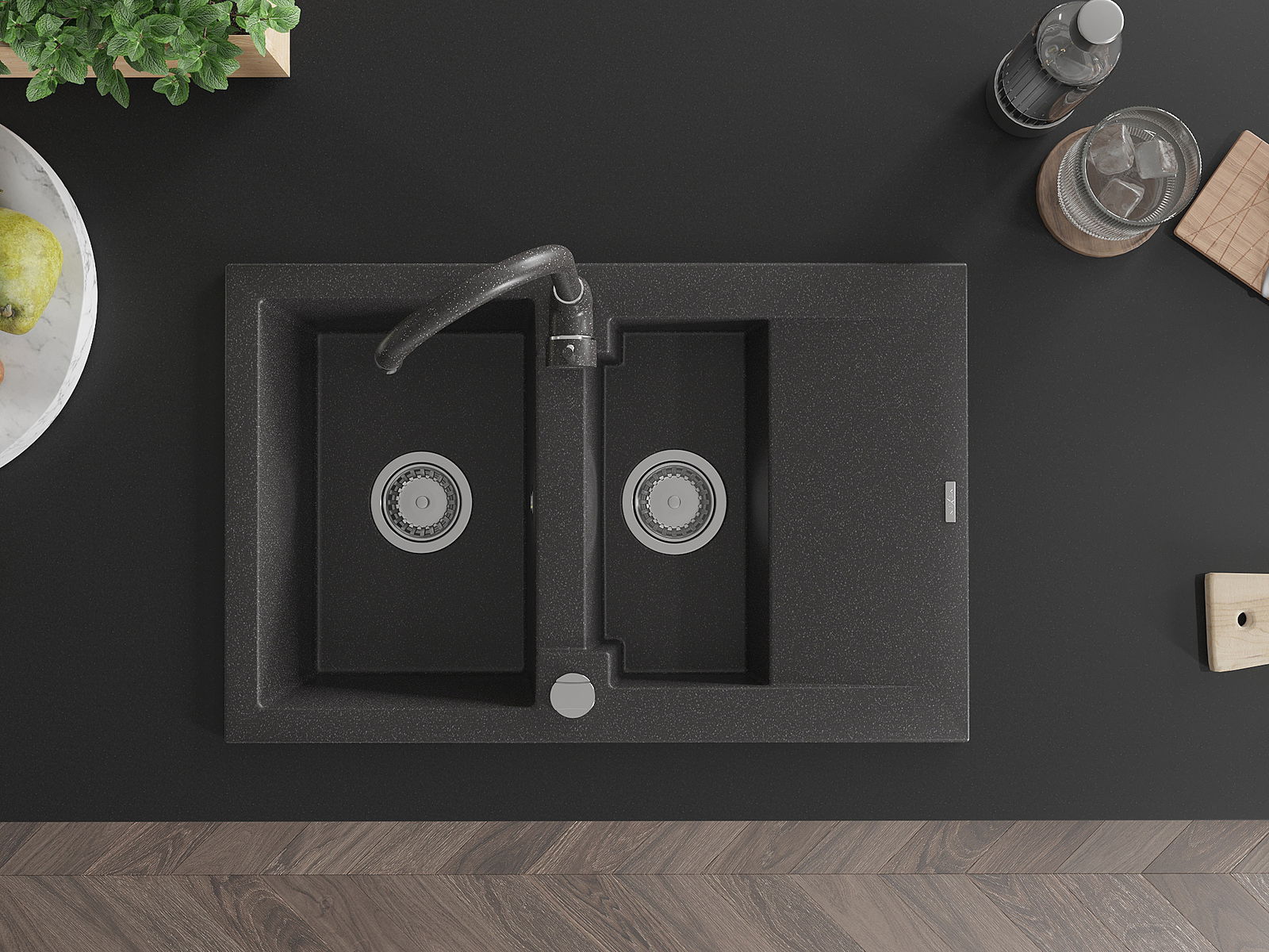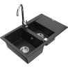Mexen Gaspar granito plautuvė 1,5 skylių su džiovykle ir virtuviniu maišytuvu Telma, juoda taškuota - 6507-76-670200-76