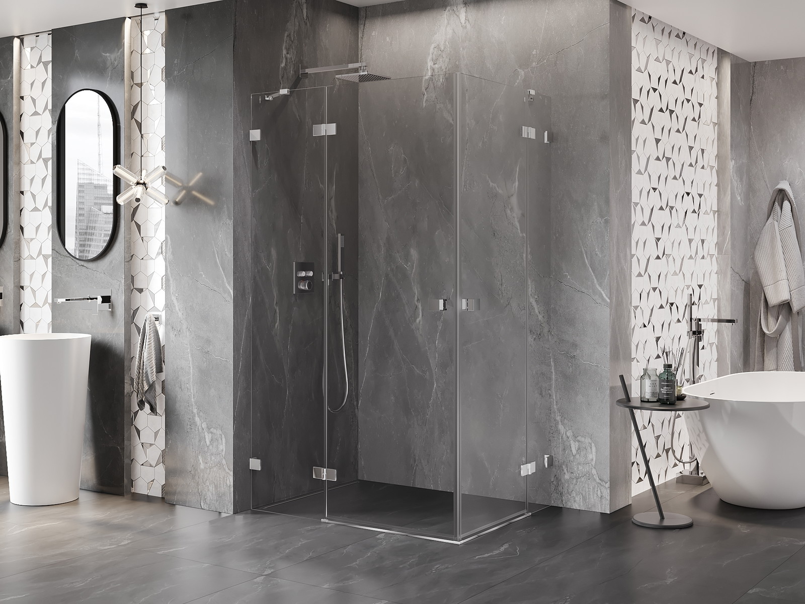 Produktą, atsižvelgiant į poreikius, galima sumontuoti tiek ant dušo padėklo, tiek tiesiogiai ant grindų. Universalus montavimo būdas leidžia pritaikyti produktą įvairių tipų vonios kambariams ir erdvės konfigūracijoms.