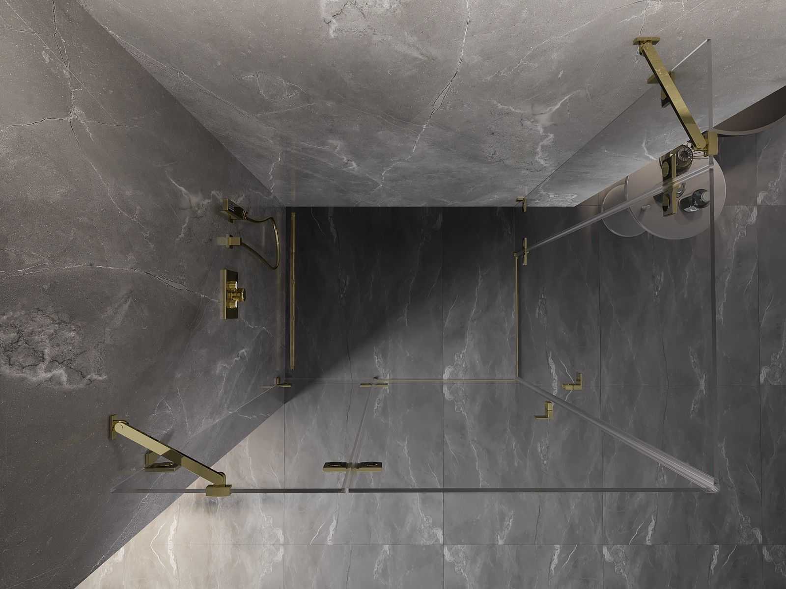 Spaustukai ir vyriai pagaminti iš labai patvaraus žalvario, papildomai sukuriantys lygią stiklo plokštumą. Tai puikus pasirinkimas, jungiantis eleganciją, patvarumą ir šiuolaikinį dizainą. Tokie sprendimai prideda dušo estetikai ir tuo pačiu palengvina švaros palaikymą.