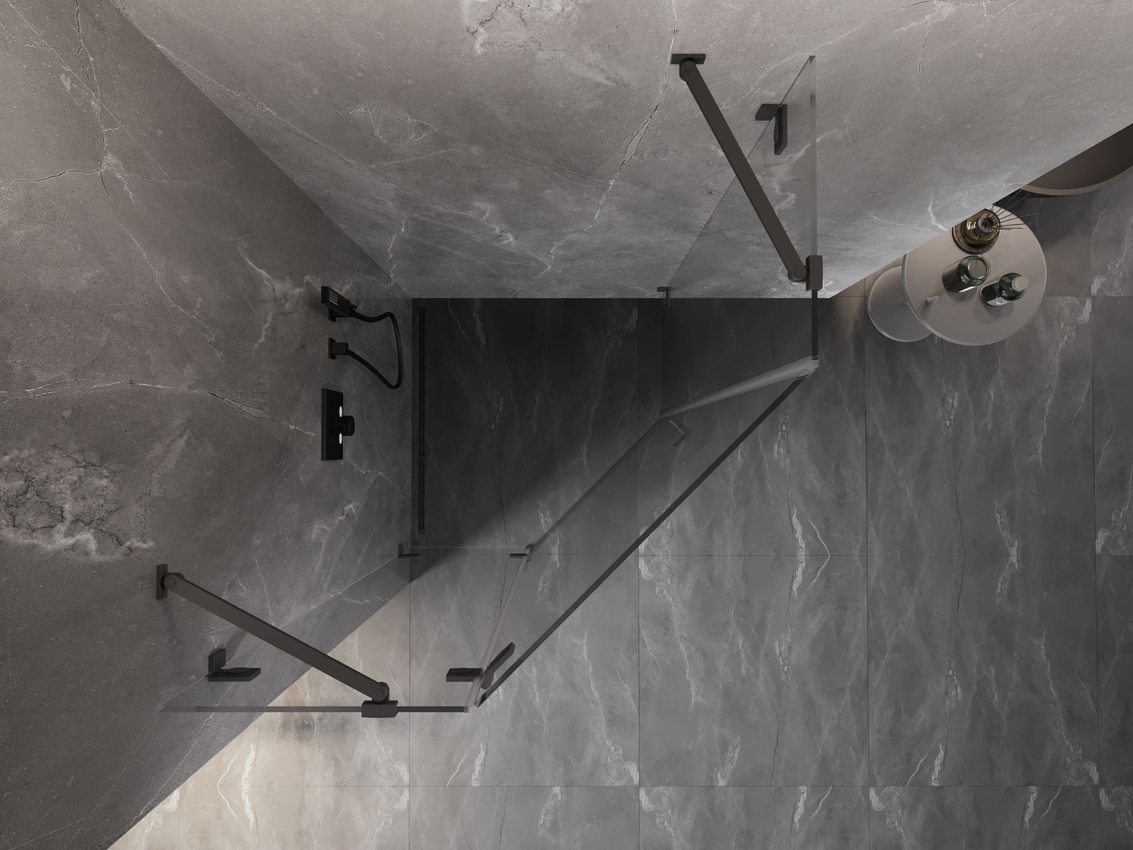 Spaustukai ir vyriai pagaminti iš labai patvaraus žalvario, papildomai sukuriantys lygią stiklo plokštumą. Tai puikus pasirinkimas, jungiantis eleganciją, patvarumą ir šiuolaikinį dizainą. Tokie sprendimai prideda dušo estetikai ir tuo pačiu palengvina švaros palaikymą.