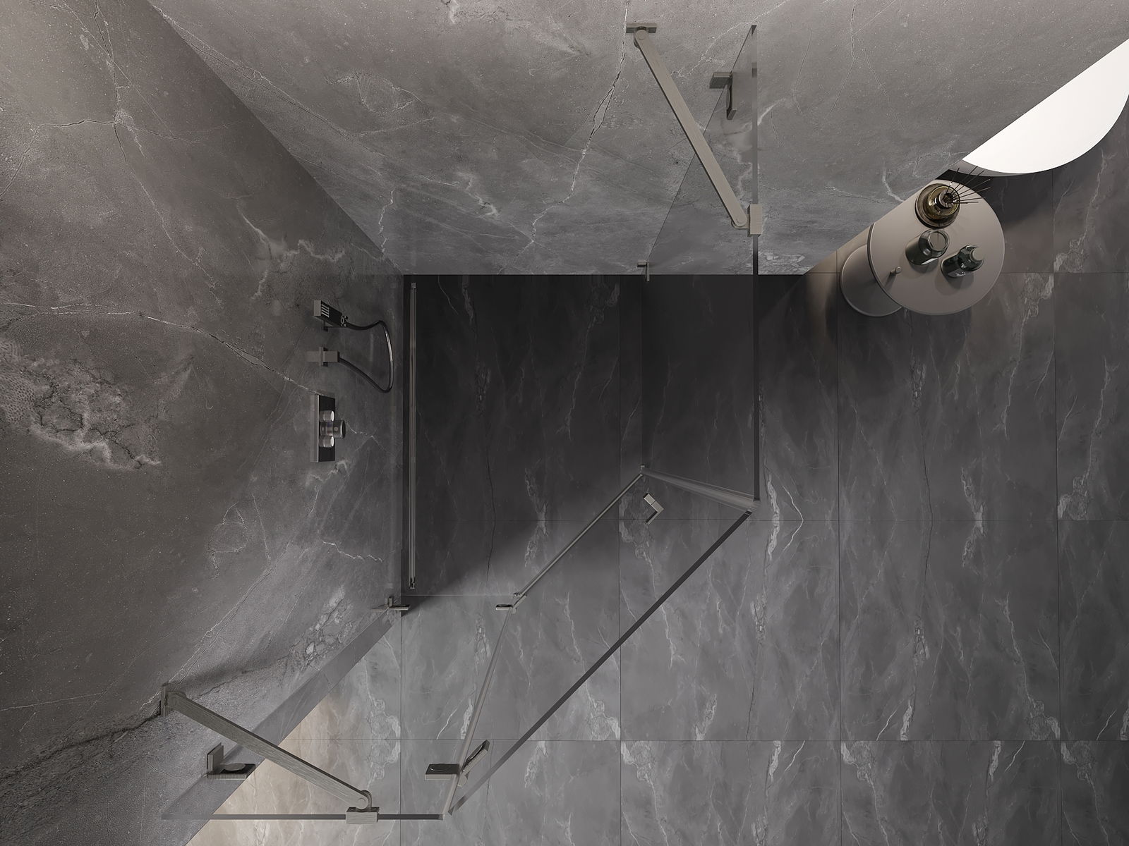 Mexen Lunar penkiakampė atverčiama kairioji dušo kabina 80 x 100 cm, permatoma, šlifuotas nikelis - 831-080L-100P-97-00-L